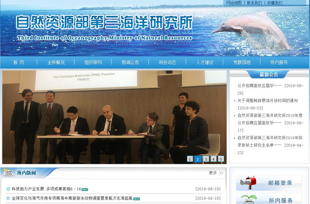 自然资源部第三海洋研究所(简称海洋三所),创建于1959年,是自然资源部直属的国家公益一类综合型海洋科学研究机构,主要从事海洋基础研究、应用研究和高新技术研究,促进海洋科技进步,为海洋管理、公益服务、海洋经济发展及海洋安全提供科技支撑。海洋三所现有编制505人,截至2018年12月,在职职工444人,其中有中国工程院院士1人,享受政府特殊津贴专家4人,入选国家“百千万人才工程”2人,入选福建省“百千万人才工程”4人,厦门市拔尖人才4人,具有副高级职称以上科技人员160余人,具有博士学位人员160人。海洋三所是1984年国务院学位委员会批准的硕士学位授予单位,建有博士后科研工作站,拥有1个一级学科硕士学位授权点(海洋科学)和2个二级学科硕士学位授权点(微生物学和环境科学),并与清华大学、中国科技大学等高校联合招收博士研究生,,在读硕、博士研究生160多人。先后与美、德、法、日等30多个国家以及我国台湾、香港等地区的有关机构建立了交流与合作关系。主办出版中国自然科学核心期刊《应用海洋学学报》,同时是国家海洋标准委员会生物资源开发与保护分技术委员会、中国海洋学会海洋生物资源专业委员会、中国海洋工程咨询协会环境生态专业委员会,中国太平洋学会危险品与放射性评估分会、中国生态学会海洋生态专业委员会以及福建省海洋学会的依托单位。海洋三所重点发展深海生物研究与海洋生物资源开发利用、全球变化与区域海洋响应、海洋生物多样性与生态系统保护、应用海洋学四个学科领域13个研究方向,拥有10个研究部门(含自然资源部属2个重点实验室和1个工程中心),以及面向服务经济社会建设为主的厦门海洋工程勘察设计研究院。在深海微生物、海洋-大气化学与全球变化等学科领域处于全国领先地位,部分成果达到国际先进水平;海洋生物多样性和生态系统保护管理等学科具有较明显的优势,部分领域居全国领先水平;海洋生物资源开发利用技术居国内先进水平,产业研发平台应用初见成效;在台湾海峡、南海等区域海洋学研究方面积累了大量一手资料,海洋声学等领域具有一定的学科优势。经过近60年的发展,海洋三所取得了一系列重要科技成果,已经成为我国海洋科学研究的重要力量,在国际上具有一定的知名度,为我国海洋科技发展、海洋综合管理、海洋经济发展、海洋权益维护和海洋生态文明建设做出了重要的贡献。海洋三所保藏有我国迄今为止最大的灰鲸标本和十万多份生物标本,拥有国家级深海微生物资源库,国内最先进的4500吨级海洋综合科学考察船“向阳红03”船自2016年3月建成并投入使用以来,已圆满完成了多个综合调查航次任务。海洋三所持有国家级《检验检测机构资质认定证书》《ISO9001:2015质量管理体系认证证书》、甲级《建设项目环境影响评价资格证书》、甲级《工程勘察证书(海洋工程勘察综合类)》、甲级《工程设计资质证书(海洋行业-沿岸工程)》、甲级《测绘资质证书(海洋测绘)》、乙级《工程咨询单位资信认定-生态环境与建设工程及水运(港口河海工程)》和乙级《地质勘察资质证书(海洋地质调查)》等各类技术咨询服务证书,在海洋发展规划、环境保护规划和重大基础建设等方面的海洋管理和海洋经济发展提供了大量的基础性、支撑性技术服务,为我国国民经济建设、国家安全和海洋科学技术的发展做出了贡献。