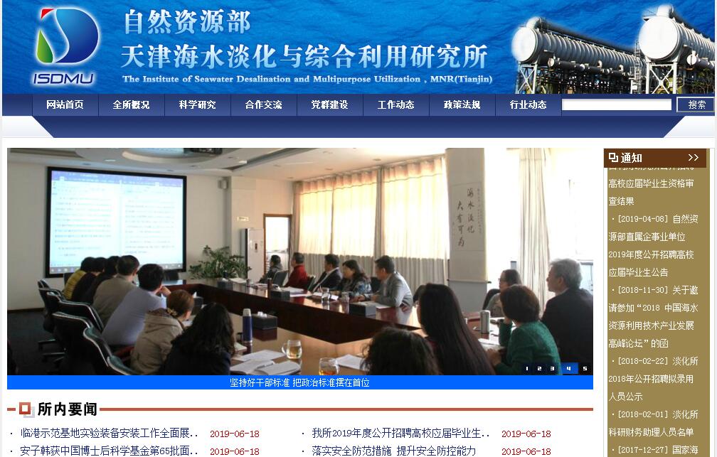 自然资源部天津海水淡化与综合利用研究所1978年经国务院批准成立,是我国唯一专门从事海水利用(海水淡化、海水直接利用、海水化学资源利用、海水净化与水再利用、膜科学、海水利用发展战略、海水及苦咸水利用检测与监测、海岛水资源保护与利用、防腐与水处理等)公益技术、共性技术、产业化关键技术和发展战略研究的国家级公益类非营利性科研机构,是国家海水及苦咸水利用产品质量监督检验中心、国家海水利用工程技术研究中心、海水淡化技术国家地方联合工程实验室、全国海洋标准化技术委员会海水淡化及综合利用分技术委员会、中国膜工业协会液体分离膜产品检验检测中心和环印联盟(IORA)海水淡化技术协调中心、亚太脱盐协会(APDA)秘书处依托单位。建所40年来,承担完成国家科技攻关、863计划、院所基金、高技术产业化专项以及省部级科技攻关等有关海水利用的重大科技项目百余项,建成一批国家重大科技示范工程,技术支撑编制完成国家首部《海水利用专项规划》和《海水利用标准发展计划》,获得国家和省部级科技奖励38项、国家专利200余项,已发布国家及行业标准61项。具备国家海洋行业工程甲级设计资质、工程咨询甲级资信资格。通过ISO9001:2015质量管理体系认证和国家计量认证,设有博士后科研工作站。