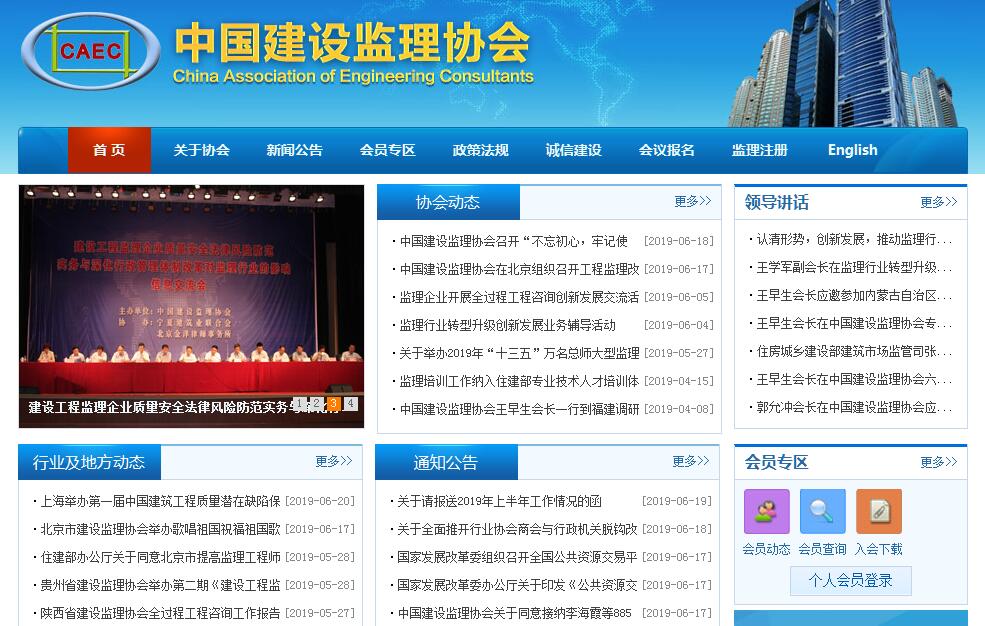 中国建设监理协会是由在中华人民共和国境内注册、从事建设工程监理业务相关单位和个人自愿组成的全国性、行业性、非营利性社会组织,简称监理协会。英文名称为: China Association of Engineering Consultants,英文名称缩写为:CAEC.本会根据中国共产党章程的规定,设立中国共产党的组织,开展党的活动,为党组织的活动提供必要条件。监理协会的宗旨是:以邓小平理论、“三个代表”、科学发展观为指导,遵守法律、法规,遵守社会道德、职业道德,贯彻执行国家的有关方针政策,维护会员的合法权益,及时向政府有关部门反映会员的要求和意见,热情为会员服务,引导会员遵循“守法、诚信、公正、科学”的职业准则,促进我国社会主义现代化建设事业、建设工程监理事业的健康发展,为国家建设更多的安全、适用、经济、美观的优质工程。遵守宪法、法律、法规和国家政策,践行社会主义核心价值观,遵守社会道德风尚。监理协会接受业务主管单位中华人民共和国住房和城乡建设部和社团登记管理机关中华人民共和国民政部的业务指导和监督管理。协会的业务范围:一、组织研究建设工程监理的理论、方针、政策;二、维护行业的社会形象和会员的合法权益;三、制定工程监理企业及监理人员的职业行为准则,开展行业自律活动;四、受主管部门委托,组织编制建设工程监理工作标准、规范和规程;五、协助会员开拓国内外监理业务;六、以交流、展览、展示等多种方式,加强建设工程监理事业的宣传工作;根据有关规定经批准表彰会员单位中的先进企业和个人;七、组织会员交流工程管理、企业管理和建设工程监理工作经验,提高会员的业务能力、管理水平和人员素质;八、举办多种形式的与监理业务相关的培训研讨班,为会员培训企业管理和建设工程监理人才;九、组织编写、发行建设工程监理教材、书刊、资料及与建设工程监理业务相关的音像资料;十、组织研究、开发、推广建设工程监理应用软件,帮助会员提高现代化科学管理水平;十一、向会员提供与建设工程监理有关的咨询服务;十二、开展国内外信息交流活动,为会员提供信息服务;十三、加强与国外同行业组织的联系,组织会员赴国外考察建设工程监理及相关业务,开展业务交流、培训及合作活动;十四、开展建设工程监理业务的调查研究工作,向政府有关部门提供情况和建议,协助住房和城乡建设部制定建设工程监理法规和行业发展规划;十五、完成住房和城乡建设部委托的有关建设工程监理行业方面的工作;十六、依照有关规定组织举办研讨会、论坛活动。
