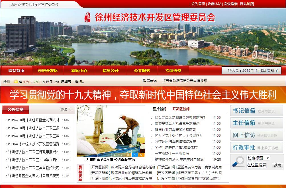 徐州经济技术开发区创建于1992年7月,2010年3月晋升为国家级经济技术开发区,辖徐庄镇及大庙、大黄山、东环、金山桥、金龙湖五个街道办事处,总面积293.6平方公里,常住人口32万人,是中国工程机械之都核心区、国家新型工业化高端装备制造产业示范基地、国家火炬计划新能源特色产业基地、全国知名品牌创建示范区、国家知识产权试点园区、国家生态工业示范园区、海外人才中国创业示范基地,综合经济实力居全省参评的110家开发区第7位。一是坚持解放思想、转变理念,综合实力迈上新台阶。通过发挥“三个作用”大讨论,在更大范围内统一思想、凝聚共识;创办“金龙湖书院”,推动各级干部转变理念、增强本领;创新制定“三位一体”绩效考核体系,点燃激情、释放活力。2017年,完成一般公共预算收入41.4亿元、增长20.8%,固定资产投资512.2亿元、增长12.6%,完成实际到账注册外资6.16亿美元、增长37.4%,自营进出口总额188.8亿元、增长23.8%,重点经济指标走在了全市前列。二是坚持项目是纲、纲举目张,招大引强形成新态势。始终把招商引资和项目建设作为高质量发展的第一路径、工作考核的第一权重、锤炼干部的第一阵地,确立“4+2”产业发展方向,精心布局“6+5”协同出击的招商体系,全力推进“1090”重大产业项目,深圳正威金属新材料、台湾正崴高端手机供应链、协鑫大晶圆、中建材薄膜电池等一批基地型项目签约落地,中科曙光先进计算中心、智慧城市体验馆、盒子科技、上海维音、溢美金融等项目建成运营,形成项目密集签约、密集落地、密集开工的强劲态势。三是坚持创新驱动、绿色集约,产城融合开启新篇章。大力推进以产业科技创新为核心的全面创新,积极推动智慧园区、平台园区建设,加快实施金龙湖聚智、高新技术企业倍增等三年行动计划,高新技术产业产值占规模以上工业产值比重达到82.9%。精心谋划城市建设的“一核两翼三片区”,启动特色产业园区建设“2030”工程,全力推进道路畅通、棚户区(城中村)改造、国土节约集约推进产业转型升级等三年行动计划,大力推进“1050”城建重点工程建设,形成一核带动、两翼齐飞、多点支撑的产城融合发展格局。四是坚持先行先试、久久为功,改革开放呈现新气象。全力推进以行政审批制度改革为核心的八项改革创新工程,系统化推进大部门制、行政审批制度、干部人事制度等领域改革,创新驻企服务、代办服务新模式,实行模拟审批、容缺预审,不讲不能办、只讲怎么办,全力服务项目建设、企业发展。坚持整合资源、开明开放,建成全市空间最大、办事事项最多、办事效率最快的政务服务中心,以“小窗口”演绎“大服务”,打造有高度、有速度、有温度的营商环境。大力推进以综合保税区为核心的开放平台建设,按照市委、市政府“边申报、边建设、边招商”要求,昼夜兼程、全力以赴,创造了综合保税区申报获批的“徐州速度”,将区域中心城市双向开放推向新高度。五是坚持勇猛精进、敢做善成,干部队伍焕发新风貌。旗帜鲜明讲政治,常态化制度化开展“两学一做”学习教育,深入开展“大走访、大排查、大整治”活动,“1080”民生实事普惠百姓,人民群众的获得感、幸福感、安全感日益提升。建立镇(街)重点经济工作考核、部门效能效率考核、招商系统业绩考核“三位一体”绩效考核体系,在招商引资和项目建设、拆迁征补、信访稳定、民生服务“四个一线”等急难险重岗位培养锻炼使用干部,锻造干部勇猛精进、敢做善成的鲜明特质。当前和今后一段时期,徐州经济技术开发区将全面贯彻党的十九大精神和习近平总书记视察徐州重要指示,不断提高在徐州发展大局中的责任站位、增强在中心城市建设中的干事担当、引领在“一带一路”重要节点中的双向开放,努力把高质量发展贯穿到经济社会发展的全过程、各领域,推动产业变革、效率变革、动力变革,建设现代产业园区、奋力走在高质量发展前列。