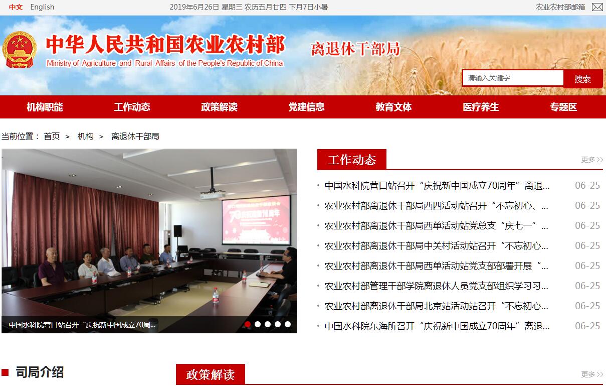 > 农业农村部离退休干部局