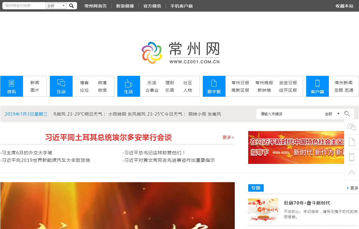 常州网(www.cz001.com.cn),简称常州网,是常州市倾力打造的地方新闻类综合门户网站,是我市继报纸、广播、电视之后的第四媒体。常州网整合全市新闻信息资源,由常州市互联网新闻中心主办(中心是2006年6月成立的全民事业单位,是江苏省文明单位、常州文明单位)。常州网拥有“国家一类新闻网站”资质,在常州独此一家,具备独立采访、编辑和发布新闻的资格,有资质共享全国网站新闻资源,开展时政类电子公告服务和向公众发送时政类通讯信息,直接推荐参加国家级新闻奖项的评选。常州网包括常州新闻、龙城论坛、龙城博客、常州社区网、乐活常州等频道及栏目,日访问流量120万以上,龙城论坛注册用户30余万,龙城博客注册用户6万,20%为本地知名博友。受众分布主要为: 企、事业单位员工、机关公务员、医生、教师、新闻同行,以及拥有家庭电脑的广大居民。常州网已经加入Google、百度、搜狐、新浪、网易等各大国内搜索引擎。常州网旗下涵盖网站、新媒体等多种服务平台,以常州网“微”矩阵(常州网、龙城论坛、龙城博客、常州拍客4大微博账号,以及常州网、觅食兵团、全城热恋、龙城论坛、常州社区网、龙城博客、运河拍客、乐居常州等10余个微信号)、常州微信联盟、龙眼APP、一直播常州网、常州手机报等移动新媒体产品为主打,以品牌营销策划、新媒体运维推广、跨平台技术开发等新一代互联网思维方式满足用户个性化需求。