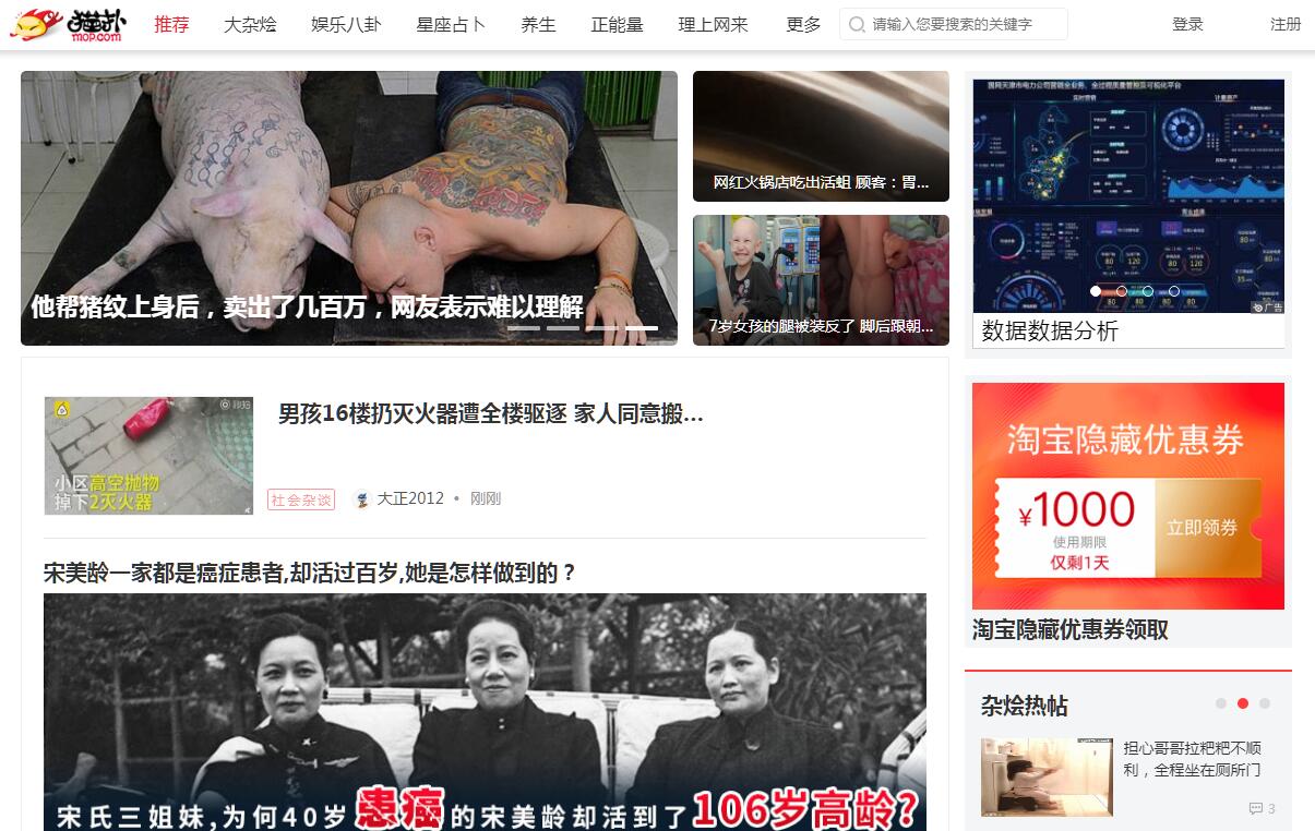 | 网站简介: 猫扑网络流行文化发源地,汇集大杂烩,贴贴、视频、娱乐新闻、文学、汽车等内容为一体的娱乐资讯聚合移动新媒体。坚持BT和YY的娱乐精神,结合大数据,深度挖掘新闻背后的故事,为用户推荐最热门的流行资讯。 |