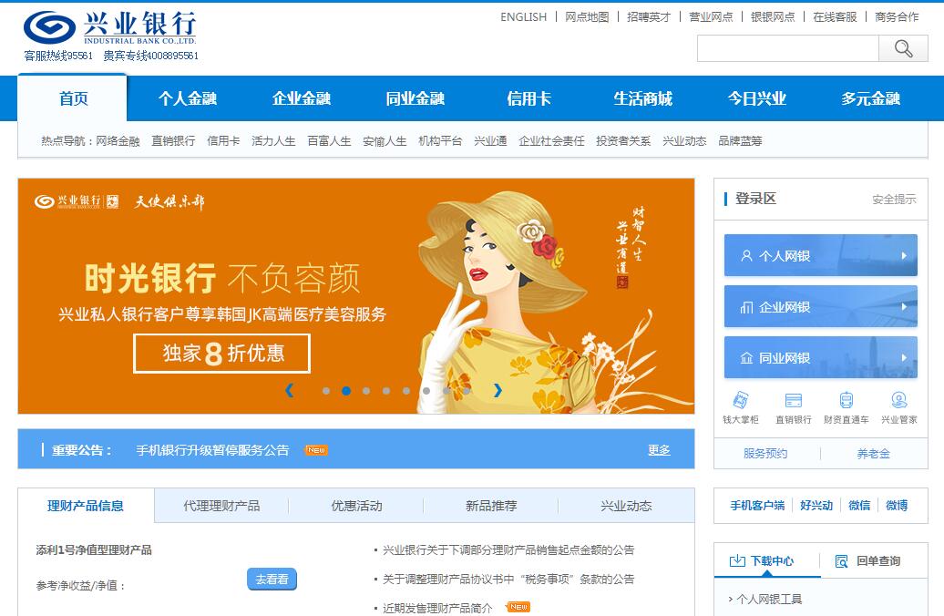 兴业银行成立于1988年8月,是经国务院、中国人民银行批准成立的首批股份制商业银行之一,总行设在福建省福州市,2007年2月5日正式在上海证券交易所挂牌上市(股票代码:601166),注册资本190.52亿元。开业三十年以来,兴业银行始终坚持“真诚服务,相伴成长”的经营理念,致力于为客户提供全面、优质、高效的金融服务。截至2014年末,兴业银行总资产突破4万亿元,达到4.41万亿元,较年初增长19.84%;归属于普通股股东每股净资产12.86亿元,较年初增长22.61%。全年营业收入1248.34亿元,同比增长14.23%;实现归属于母公司股东净利润471.08亿元,同比增长14.31%;加权平均净资产收益率保持在21.19%的较高水平;已在全国主要城市设立108家分行、1435家分支机构;旗下拥有兴业国际信托、兴业金融租赁、兴业基金、兴业消费金融、兴业财富和兴业国信资产管理等子公司,形成以银行为主体,涵盖信托、租赁、基金、证券、消费金融、期货、资产管理等在内的现代金融服务集团。作为中国首家也是目前唯一一家“赤道银行”,兴业银行始终秉持“科学、可持续”的发展理念,依法、稳健、文明经营,兼顾维护股东、客户、银行、员工以及社会环境等各方利益,积极践行企业社会责任,深受国际国内各界广泛认可和好评。2018年《财富》世界500强排行榜排名第237名。