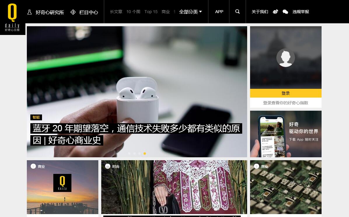 | 网站简介: 好奇心日报以商业视角观察生活并启发你的好奇心,囊括商业报道、科技新闻、生活方式等各个领域,致力成为这个时代最好的媒体,为用户提供最好的新闻资讯。之所以叫「好奇心日报」,是因为我们认为好奇心是人类最美好的品质之一,我们筛选最有价值的信息,你能在这里看到全球最有想法、最值得关注的各界动态,以及它们背后的故事。祝愉快! |
