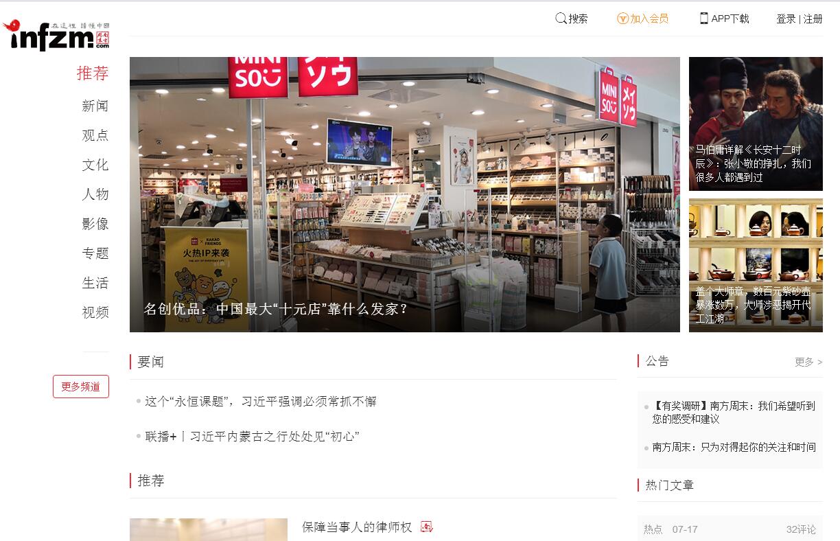 《南方周末》创办于1984年,由南方报业传媒集团主管主办,以“在这里,读懂中国”为追求,以“正义、良知、爱心、理性”为基本理念,是一份在中国有着广泛影响、深具公信力的严肃新闻大报。作为中国发行量最大的新闻周报,《南方周末》覆盖各大中城市,订阅比例超过68%,读者群优质稳定,高等以上学历者超过78%。至2018年,已连续11年被中国邮政评为“中国畅销报刊”。在“中国500最具价值品牌排行榜”上,一直是建榜以来排名前十的报纸中唯一的周报。《南方周末》逢周四出版,除评论、副刊等版块外,主打深度新闻报道,其中有很大部分是调查类报道,关注涵盖社会、时政、经济、环保、健康、教育、文化、军事等各大领域。作为中国新闻界最著名的品牌之一,《南方周末》具有巨大的国际影响力,曾专访过美国前总统奥巴马、德国总理默克尔、法国前总理阿兰•朱佩等政要和知名人士,引起了广泛关注。南方周末还是中国媒体融合发展的领先者,目前南周报系旗下有南方周末、南方人物周刊和南瓜视业等三大品牌内容机构,拥有超过5600万的有效用户。南方周末APP历史积累下载量超过1700万,官方微信关注人数超过240万,此外,还有两个粉丝量超千万的微博号——1304万的南方周末、1074万的南方人物周刊,它们与南周知道、24楼影院、南瓜学堂等共同构建起了一个颇具规模的南周新媒体矩阵。2018年上半年,南方周末正式提出了“以内容付费工程统揽融合转型工作全局”的战略思路。8月23日,南方周末宣布会员制正式上线,成为中国第一家设立计量式软性内容付费墙的报纸。