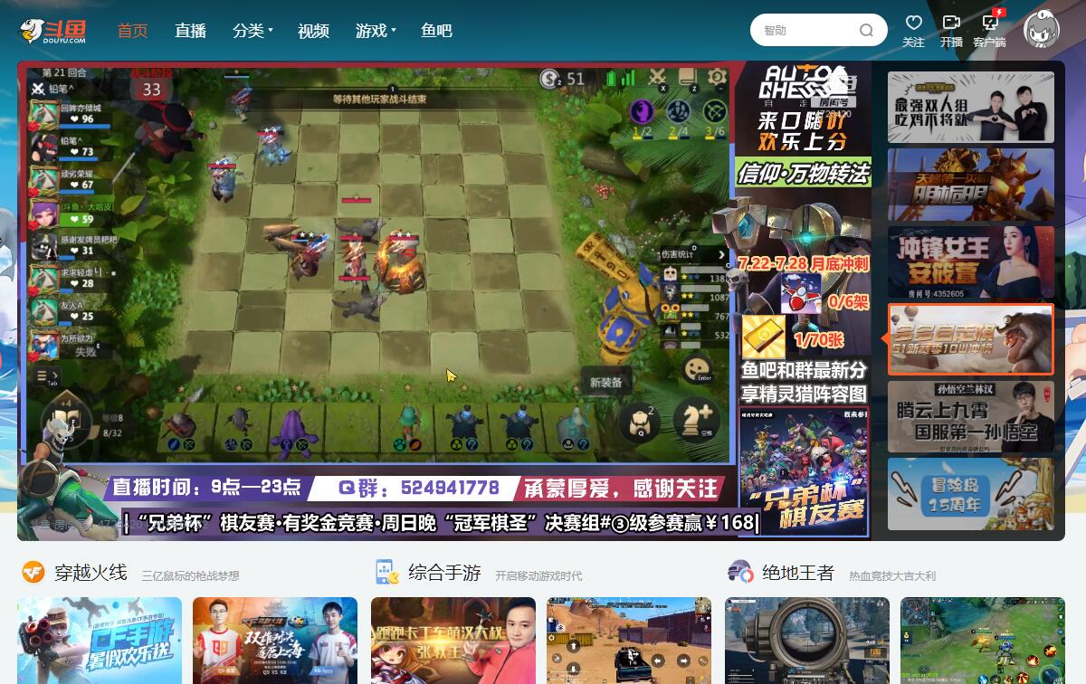 | 网站简介: 武汉斗鱼网络科技有限公司旗下的斗鱼是一家致力于为所有人带来欢乐的弹幕式直播分享网站,是国内直播分享网站中的佼佼者。斗鱼的前身为生放送直播,于2014年1月1日起正式更名为斗鱼,力图在现有的基础上稳步提高,做到最好。目前,斗鱼以游戏直播为主,涵盖了体育、综艺、娱乐等多种直播内容。每天,都有成千上万的观众与主播在斗鱼分享欢笑,获得属于自己独一份的快乐。斗鱼欢迎每一名用户:无论是组织还是个人,无论是主播还是观众,我们都力图为您提供最好的直播与观看环境;并希望与您携手,共同进步,绘制更加美好的未来。欢乐直播,尽在斗鱼! |