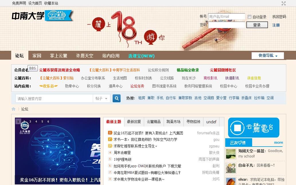 中南大学云麓园BBS。