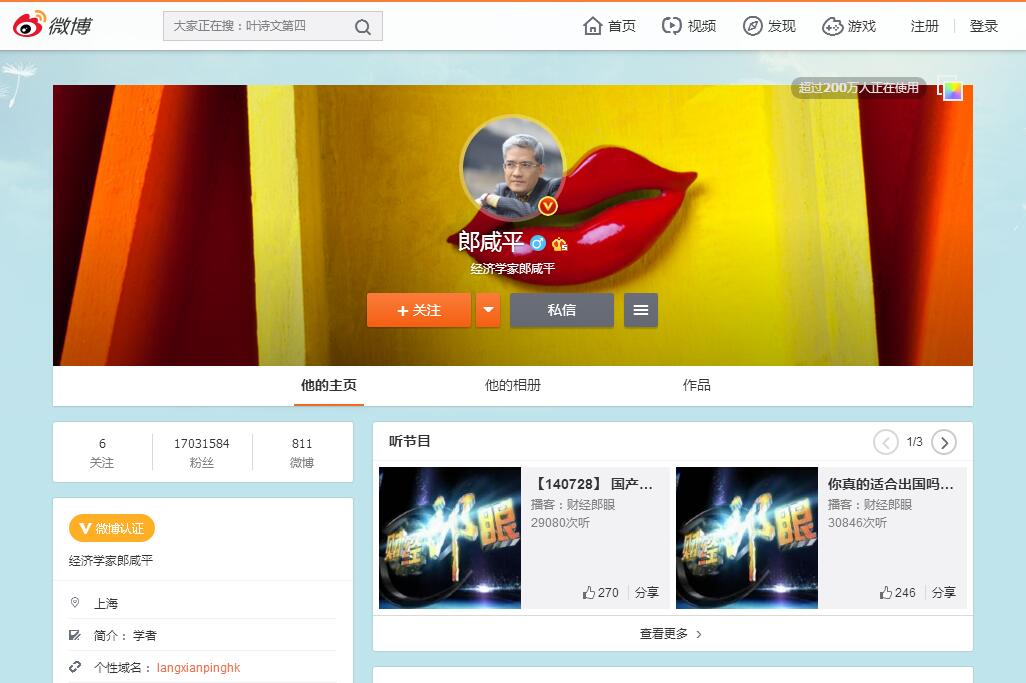 | 网站域名: | weibo.com/langxianpinghk | ||