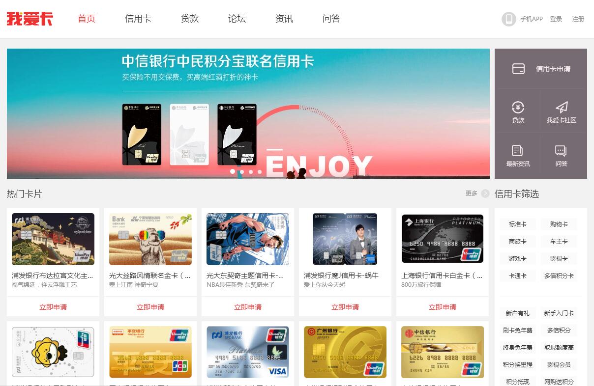 | 网站简介: 我爱卡(www.51credit.com),成立于2005年11月,致力于中国互联网个人金融服务。我爱卡是北京决策信诚科技有限公司旗下平台,业务范围涵盖信用卡、贷款与理财。目前,我爱卡已经与国内外几百家银行、其它金融机构、金融信息服务平台等建立了紧密的合作关系,如交通银行、招商银行、中信银行、广发银行、兴业银行、渣打银行、花旗银行、通用汽车金融、人人贷、宜信等等。作为互联网金融平台入口为合作方带来了大量优质和精准的目标客户群。我爱卡拥有资深的信贷行业风险管理的经验,作为信贷行业权威的综合服务平台,我爱卡目前为用户提供信用卡、贷款、理财等个人金融信贷产品综合比较和推荐服务以及周边资讯服务。同时作为金融媒体平台,为银行和金融机构提供信息发布、广告投放、金融整合营销等服务。我爱卡坚持深耕互联网金融领域,肩负推动中国网络个人金融发展的使命,不断进行产品创新和服务创新。2013年我爱卡网站与产品全面改版升级,信用卡一站式管理平台手机应用“我爱卡”上线,全新亮相的我爱卡将为个人用户和银行等金融机构客户提供更优质的服务。 |