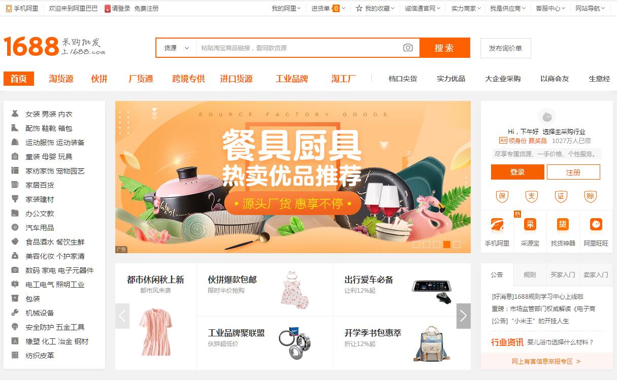 | 网站简介: 阿里巴巴(1688.com)批发网是全球企业间(B2B)电子商务的著名品牌,为数千万网商提供海量商机信息和便捷安全的在线交易市场,也是商人们以商会友、真实互动的社区平台。目前1688.com已覆盖原材料、工业品、服装服饰、家居百货、小商品等12个行业大类,提供从原料--生产--加工--现货等一系列的供应产品和服务。 |