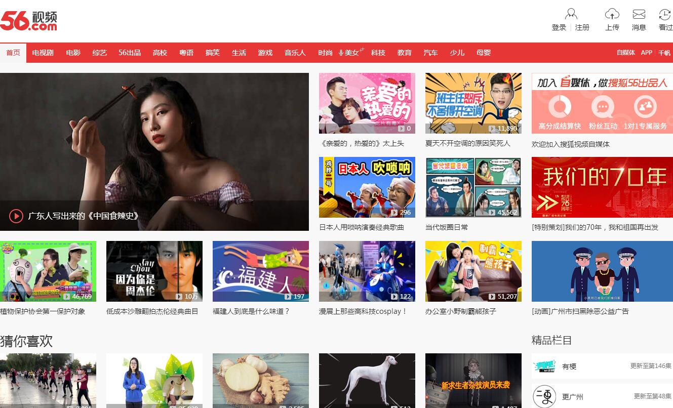 56网(56.com)成立于2005年4月,是中国领先的原创视频网站。“分享视频,分享快乐”是56网的创始理念,凭借先进的技术和不断完善的平台产品和内容,多年来持续为中国数亿的互联网用户提供免费优质的视频服务。2014年10月,56网与搜狐视频合并,加入搜狐集团,继续强化原创视频平台能力,双平台合力发展PGC业务,共同打造中国最大的PGC平台。56网的愿景是构建一个年轻、充满活力的原创视频平台,坚持打造“青春、娱乐、正能量”的品牌形象,定位于年轻、娱乐特色,让用户通过电脑或各种移动设备创作、观看和分享视频短片,展示自我、传递乐趣,是最具YouTube气质的中国视频网站。经过10年的发展与沉淀,拥有海量用户原创视频已成为平台的心竞争力。在扩大UGC竞争优势, 不断通过原创视频丰富PC、手机页面及移动App等终端内容的同时,还逐渐打造出以“56出品”、微栏目、微电影以及第三方原创为主的PGC精品内容体系,在行业自制及PGC领域独树一帜,“56首映礼”和“高校影像力”等已经成为行业最具影响力的原创内容品牌。2015年,56网与搜狐视频携手共进,继续致力于PGC内容以及自媒体用户的培养和发展,通过自媒体平台以及众筹平台等推动PGC成长,为音乐出品人、各垂直分类视频出品人打造更好的商业系统,帮助有才能的人制作传播优质内容,提供56及搜狐视频双平台推广服务,并分享非常有吸引力的广告收入分成。我们希望通过回馈自媒体出品人的方式,培养更专业的个人、视频工作室以及制作团队,创造更有价值的PGC内容,打造良性且具竞争力的PGC生态系统。此外,56网还率先推出国内首个视频内容营销联盟(VMA),并通过微播江湖、ELIFE小心点等节目成功试水,获得了较高的市场反馈和客户认可。该联盟打通了影视制作方、优质媒体、第三方数据机构、广告公司等营销资源,为广告客户提供创意策划、拍摄制作、传播推广、效果评估、案例评奖等一站式整合营销解决方案,是中国领先的集内容制作、播出发行、品牌推广为一体的娱乐视频媒体。
