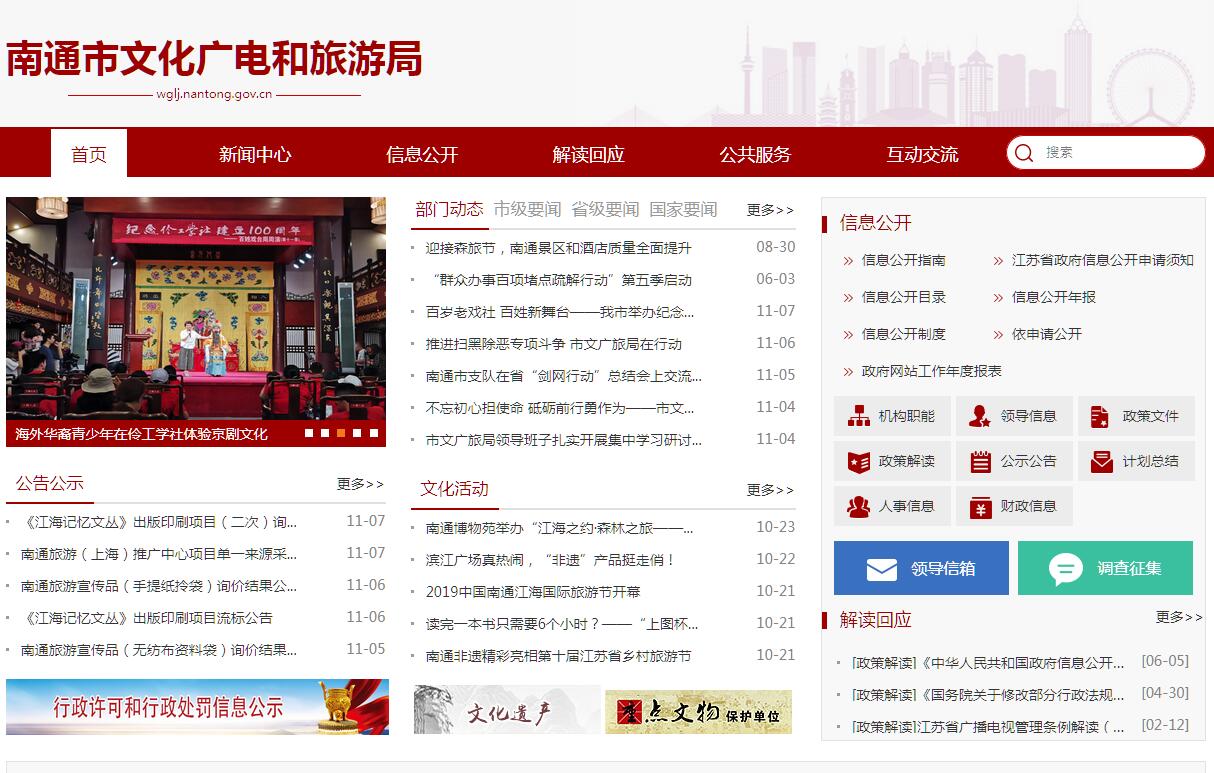 南通市文化广电和旅游局主要职责:(一)拟订全市文化、文物、广播电视、网络视听节目服务管理和旅游的政策措施,起草地方性法规、规章草案。(二)统筹规划全市文化事业、文化产业、广播电视业和旅游业发展,拟订发展规划并组织实施,推进文化和旅游融合发展,推进文化、广播电视和旅游体制机制改革。(三)指导、管理全市文艺事业,指导艺术创作生产,扶持体现社会主义核心价值观、具有导向性代表性示范性的文艺作品,推动各门类艺术、各艺术品种发展。(四)负责全市公共文化事业发展,推进全市公共文化服务体系建设和广播电视、旅游公共服务建设,深入实施文化和旅游惠民工程、广播电视重大公益工程和公益活动,指导、监督广播电视重点基础设施建设,统筹推进文化、广播电视、旅游公共服务标准化、均等化。(五)指导、协调、推进全市文化、广播电视和旅游科技创新发展,推进文化和旅游行业信息化、标准化建设,推进智慧旅游发展。(六)组织实施全市文化和旅游资源普查、挖掘、保护和利用工作,促进文化产业和旅游产业发展。(七)管理全市性重大文化活动,指导市级重点文化设施建设,组织全市旅游整体形象推广和品牌建设,促进文化产业、旅游产业市场推广和对外合作,制定全市旅游市场开发战略并组织实施,指导、推进全域旅游。(八)组织指导全市文化和旅游市场发展,对文化和旅游市场经营、服务质量进行行业监管,推进文化和旅游行业信用体系建设,依法规范文化和旅游市场,负责旅游安全的综合协调和监督管理。(九)负责全市文化市场综合行政执法工作,组织查处全市性、跨区域文化、文物、出版、广播电视、电影、旅游等市场的违法行为,督查督办大案要案,维护市场秩序。(十)负责对各类广播电视机构进行业务指导和行业监管,会同有关部门对网络视听节目服务机构进行管理。负责推进广播电视与新媒体新技术新业态融合发展,推进广电网与电信网、互联网三网融合。(十一)加强广播电视阵地管理,把握正确的舆论导向和创作导向。指导、协调广播电视全市性重大宣传活动,组织实施广播电视节目评价工作。监督管理、审查广播电视节目、网络视听节目的内容和质量。指导、监管广播电视广告播放。(十二)负责对广播电视节目传输覆盖、监测和安全播出进行监管,指导、推进全市应急广播体系建设。指导、协调广播电视系统安全和保卫工作。(十三)负责全市非物质文化遗产保护,推动非物质文化遗产的保护、传承、普及、弘扬和振兴。(十四)指导、推进全市文物事业发展,组织文物资源调查,指导、协调文物保护利用工作,组织、指导文物考古工作,负责全市博物馆监督管理工作。(十五)指导、管理全市文化、广播电视和旅游对外及对港澳台交流、合作和宣传、推广工作,组织大型文化和旅游对外及对港澳台交流活动,协调推动广播电视领域走出去工作。(十六)组织指导全市文化、文物、广播电视、网络视听和旅游行业人才队伍建设。(十七)完成市委、市政府交办的其他任务。