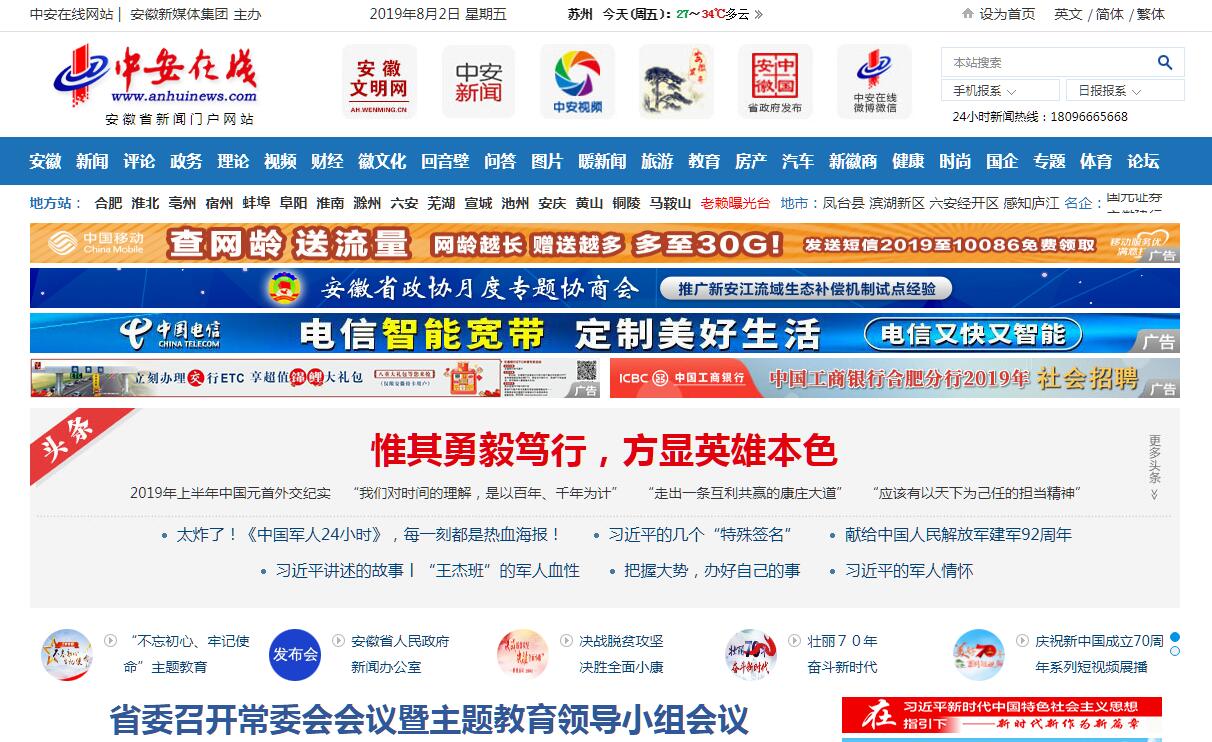 | 网站简介: 中安在线网站由安徽新媒体集团主办,是安徽省惟一重点新闻门户网站。网站提供权威、及时的安徽新闻,并汇集了安徽社会、经济、文化、生活等各个方面最新信息资讯,是安徽最具权威性最快捷全面的新闻网络传播平台。 |