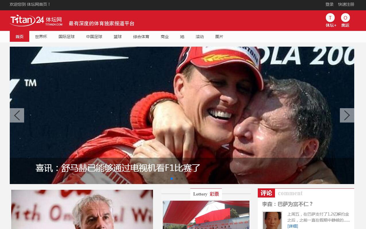| 网站简介: 体坛网(titan24.com)是体坛传媒集团旗下新成立的的体育网站,包括体育新闻、豪门官网、体坛e版、 体苑沙龙、体育动漫、体育游戏、无线体坛等大板块,旨在全方位整合集团旗下的报纸、杂志、 电视、3G手机等新、老媒体资源,打造全中国、全球华人圈最大的垂直体育门户网站。 |