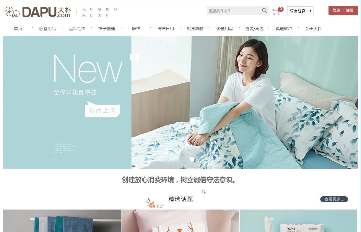 大朴网(www.dapu.com),贴身纺织品安全专家,为您提供床上用品,四件套,毛巾,浴巾,内衣,内裤,睡衣,家居服,床单,被罩,浴袍,蚕丝被的选购信息。大朴打造中国家纺安全纺织品牌,让消费者享受无甲醛,无芳香胺,无荧光增白剂的贴身棉品!汇总大朴,大朴网,大朴家纺,大朴家居网上商城,大朴官网,大朴家居旗舰店,大朴现金券,大朴优惠券的信息。大朴是由原库巴网创始人王治全在2012年创立的品牌,这也是王治全继库巴网之后的的二次创业项目,是一家致力于“高安全性、高质量、高性价比”的家居品牌电商。发展三年多以来,大朴以其独特的产品布局和市场定位,被业内和消费者称为为“中国的无印良品”。大朴定位于安全、舒适、高质量的“贴身纺织品”,抓住中国消费心理成熟、消费品电商化、及消费结构升级的大势,围绕卧室、卫生间、厨房等生活场景,为目标消费群体提供一站式的家居用品解决方案。目前主营的产品线涵盖四件套、芯类、巾类、内衣裤、文胸、袜子、拖鞋、婴童、家居服、纸巾、洗护用品、智能家居品等十余个品类。大朴对家居产品的安全、舒适、天然有着近乎偏执的追求。纺织类产品多采用棉、麻、丝、绒等天然材料,纸巾、洗衣液等快消品都使用无添加、易降解、天然环保的原材料。在设计美学上,大朴主张“侘寂之美”,删繁就简、大道至朴,还原“物为人用”的初心和本性,在宁静中寻得生活的禅意。作为一个互联网品牌公司,大朴采用全渠道营销策略。除官网、APP、微商城等自有独立渠道之外,已经在天猫、京东、唯品会等国内主流电商平台开设多家旗舰店,并在在全国十余城市开设了实体门店,探索和践行着线上线下打通的“O2O”营销策略。同时,在社群营销和粉丝营销上,大朴建立起了基于移动互联网的产品型社群,通过各种创新性的活动,引领了家居行业的“互联网+”的方向与实践。大朴领先的商业模式、优秀的创业团队、卓越的经营理念,受到了资本市场的青睐,截止目前已经完成了A轮、B轮、C轮融资。其中罗莱生活是其B轮的投资方之一。C轮融资于2016年3月在京东股众筹平台启动,18分钟募集3500万 ,68分钟突破4000万,创下京东东家股权众筹的新记录。大朴已经成为家纺家居行业的一匹黑马,正走在稳健经营的品牌发展之路上。始于真,止于善,起于简,成于美,大朴是一门家居美学,是一种生活态度。
