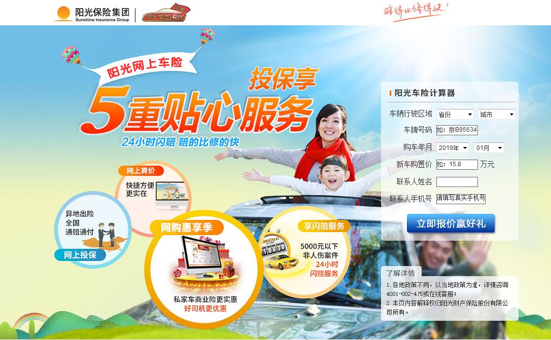 | 网站简介: 车险计算器。网络客户专享_阳光车险投保_多省15%_多重惊喜好礼回馈_闪赔服务更贴心。 |
