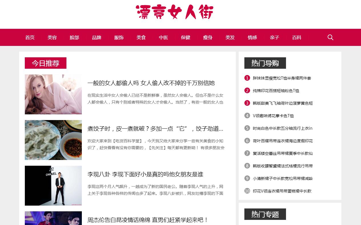 | 网站简介: 漂亮女人街是个综合女性门户,专注女性时尚资讯,女性健康生活!为您提供女性,母婴,两性,减肥,美容,养生,整形,保健,饮食,中医,心理,医讯等女性潮流资讯,致力打造成中国第一女性综合资讯网站。 |
