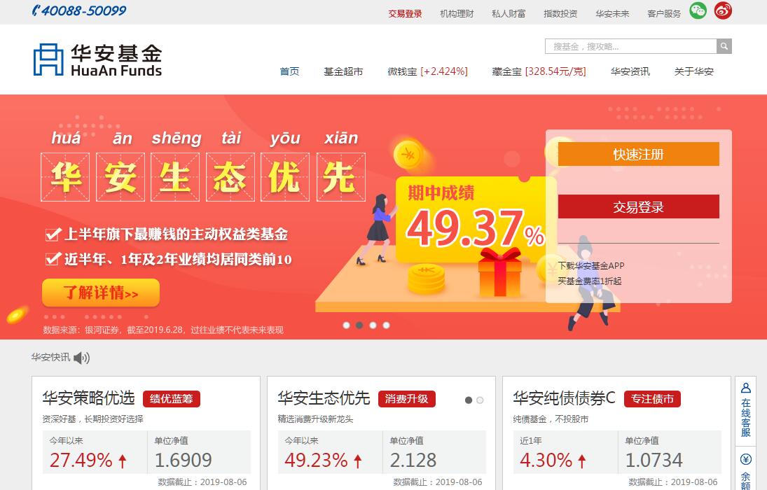 | 网站简介: 华安基金是证监会批准成立的首批五家基金管理公司之一。截至2017年12月31日,已服务千万客户,累计现金分红578亿,官网等网上直销平台认申购、定投费率优惠最低1折起。 |