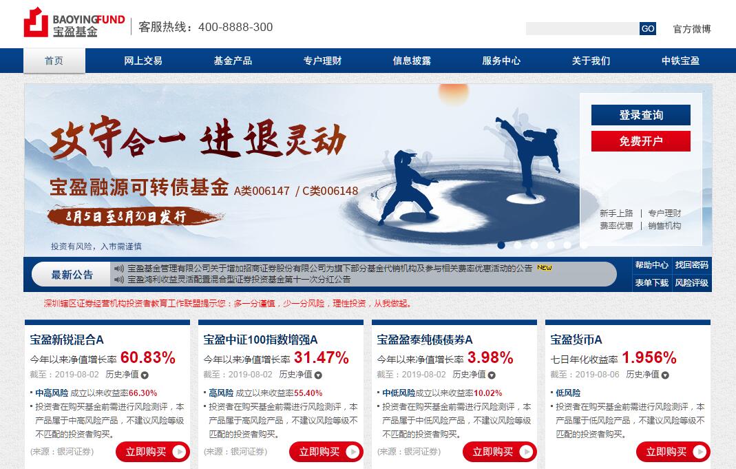 宝盈基金管理有限公司(以下简称“公司”)成立于2001年5月18日,注册资本人民币1亿元,注册地深圳。公司股东实力雄厚,分别为中铁信托有限责任公司、中国对外经济贸易信托有限公司。公司主要经营业务是发起设立证券投资基金(以下简称基金)、基金管理、特定客户资产管理以及证监会批准的其他业务。公司旗下基金产品齐全、风格多样,截至2018年12月末,公司共管理基金25只,已构建了涵盖股票型基金、债券型基金、混合型基金和货币市场基金的较完备的产品线,能够满足各类风险偏好投资者的需求。2008年3月,公司获特定客户资产管理业务资格。目前,已管理多只特定客户资产管理产品。在投资研究方面,公司倡导以深度基本面研究为基础的价值投资,推动权益投资风格多元化,强调以积极的信用风险管理为基础的固定收益投资,力争为投资人创造持续良好的投资回报。在内部控制方面,公司秉持“投资者利益至上”的首要原则,高度重视合规文化的建设,通过加强制度建设和监察稽核工作,将风险控制贯穿在业务操作的各个环节,保证业务运作合法合规。截至2018年12月末,母公司宝盈基金管理有限公司资产管理规模287.54亿元,子公司中铁宝盈资产管理有限公司资产管理规模99.68亿元,合计资产管理规模387.22亿元。