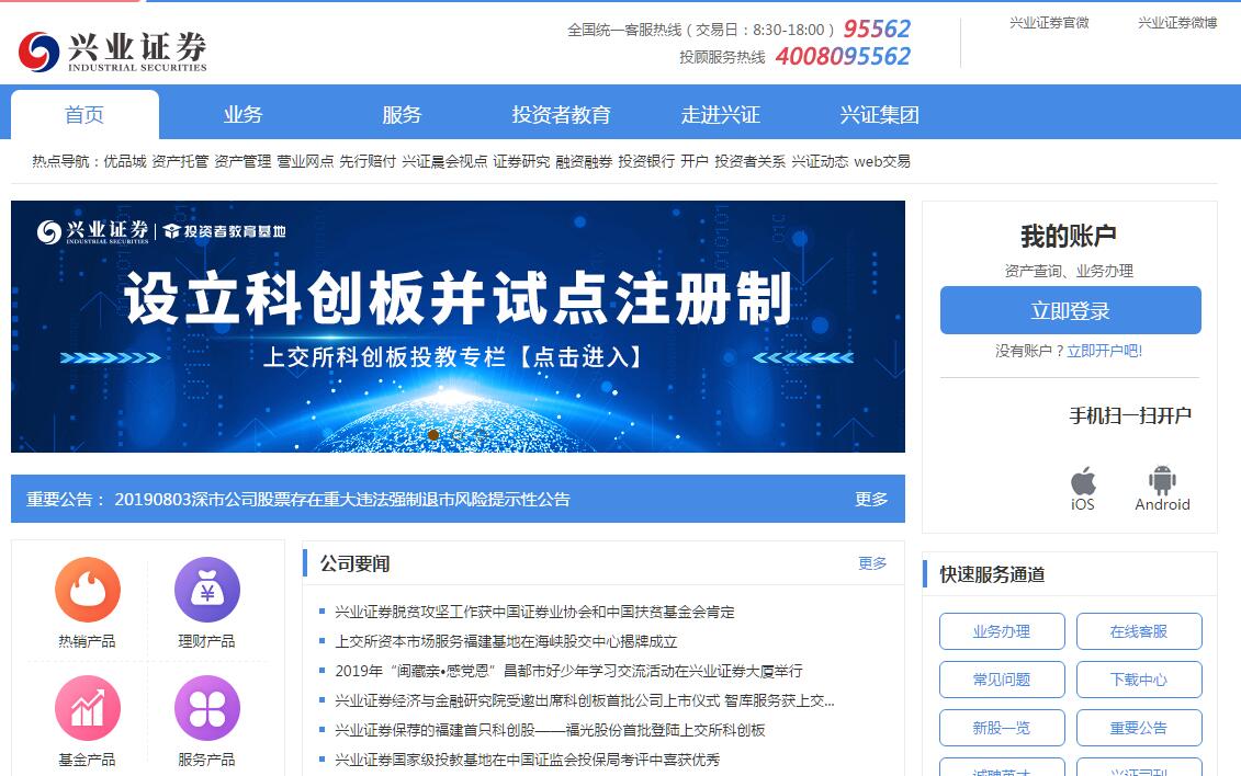 兴业证券股份有限公司是中国证监会核准的全国性、综合类、创新型证券公司,成立于1991年10月29日。2010年10月,在上海证券交易所首次公开发行股票并上市(601377.SH)。公司注册地为福建省福州市,主要股东有福建省财政厅、福建省投资开发集团有限责任公司、中国证券金融股份有限公司等。兴业证券主要经营经纪业务、承销与保荐业务、投资咨询业务、自营业务、财务顾问业务、融资融券业务、基金与金融产品代销业务、基金托管业务、期货介绍业务等。在全国31个省、市、区共设有62家分公司,140家证券营业部,控股兴全基金管理有限公司、兴证国际金融集团有限公司、兴证期货有限公司;全资拥有兴证证券资产管理有限公司、兴证创新资本管理有限公司、兴证投资管理有限公司;经营海峡股权交易中心(福建)有限公司;参股南方基金管理有限公司、中证信用增进股份有限公司、中证机构间报价系统股份有限公司、证通股份有限公司;设立兴业证券慈善基金会,专门从事慈善公益与扶贫活动。兴证国际金融集团有限公司于2019年1月在香港联交所主板上市(6058.HK),是兴业证券集团国际化和全球化发展的平台。兴业证券成立以来,始终坚持依法经营、稳健经营、文明经营。在中国特色社会主义进入新时代的新形势下,兴业证券提出了“建设一流证券金融集团”的新战略目标。明确提出要把公司建设成为具有一流的资本实力,一流的风险管理能力,一流的竞争能力和盈利能力,一流的人才和优秀企业文化、科学的机制体制以及较强国际竞争力的证券金融集团。