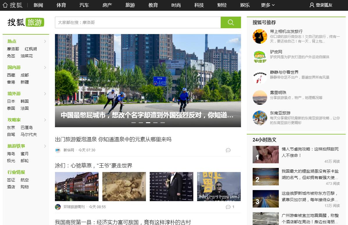 | 网站简介: 搜狐旅游是搜狐旗下的旅游资讯平台。致力为读者提供多元、实用、国际化的旅游资讯,相信行走的价值,推动国人在旅途中获得成长。 |