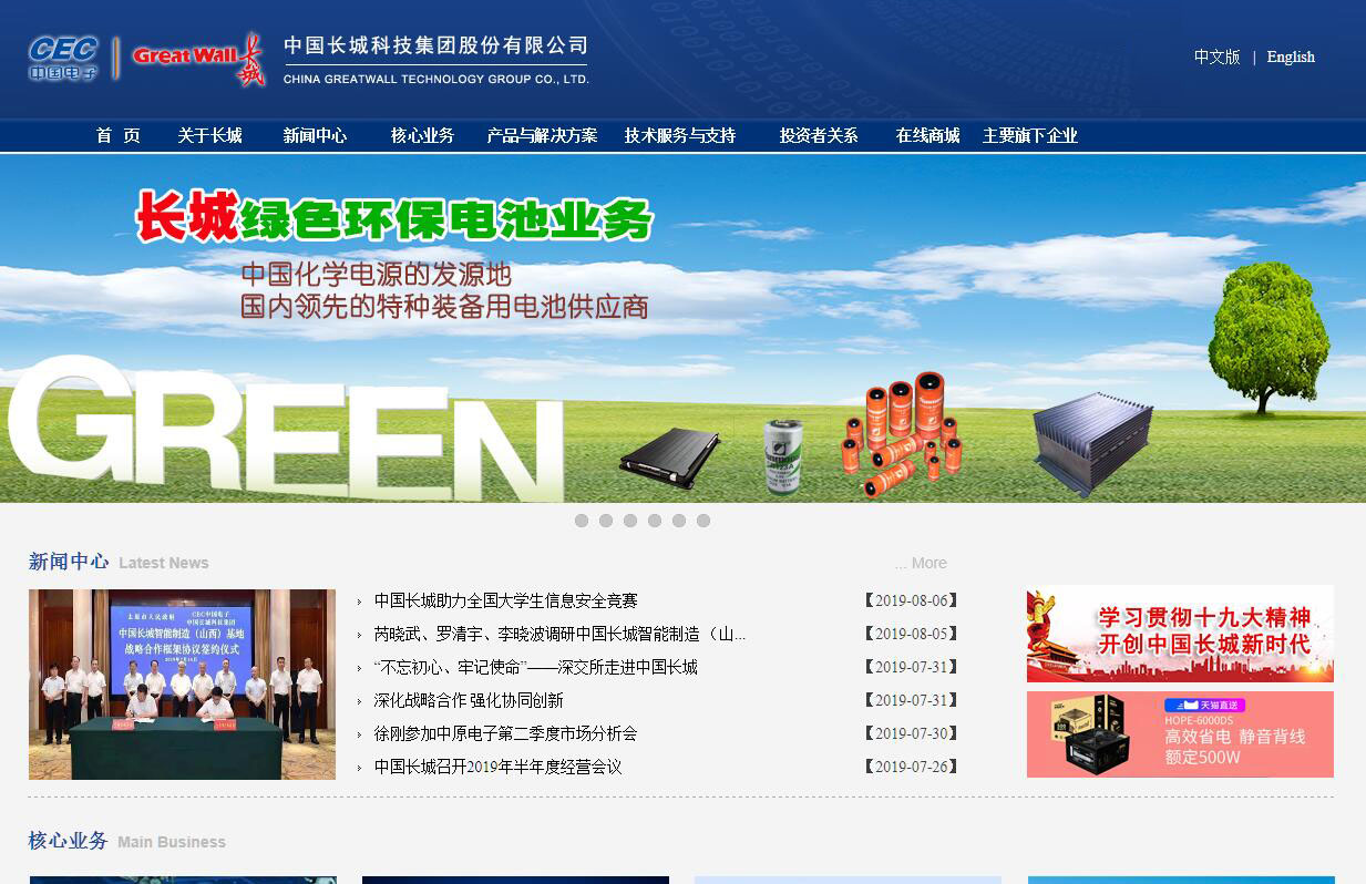 中国长城科技集团股份有限公司(以下简称中国长城,股票代码:000066)是由中国电子信息产业集团有限公司(简称中国电子)所属中国长城计算机深圳股份有限公司、长城信息产业股份有限公司、武汉中原电子集团有限公司、北京圣非凡电子系统技术开发有限公司等四家骨干企业于2017年1月重组整合组成,同年3月完成注册,注册资本29.36亿元,总资产160.02亿元,净资产66.5亿元,在职员工近1.5万人。作为中国电子着力打造的网络安全与信息化专业子集团,中国长城秉持“铸造网安长城,链接幸福世界”的愿景,核心业务覆盖网络安全基础设施及行业信息化解决方案、高新电子和电源。相关业务水平处于国内领先地位,掌握众多核心技术,在金融、医疗、交通、教育等关键领域和重要行业具有深厚的行业理解、丰富的服务经验和稳定良好的合作关系。公司坚持创新驱动、人才兴企战略,已构建起4个国家级创新平台+9个省级创新平台+3家院士工作站+3个博士后工作站的科技创新平台体系,拥有专利1063项,其中发明专利208项。公司有兼职院士4名,享受国务院政府津贴的专家7名,国家级、省部级科技奖项获得者119名。2018年,中国长城成功跻身“双百行动”改革试点企业,公司将以此为契机,聚焦核心业务、进一步提升公司核心竞争力,全方位培育科技创新发展动力,加强人才“培、引、用”,全面释放改革活力,实现高质量发展。