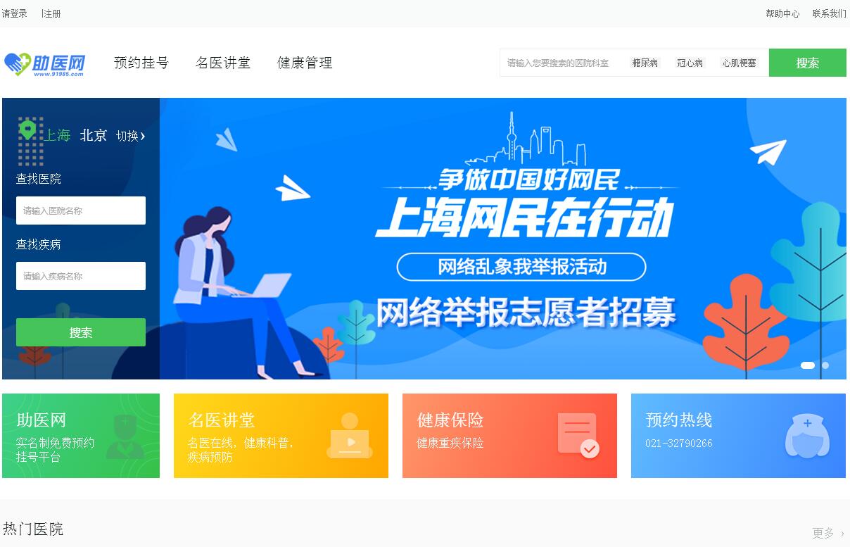 助医网(公司名称:上海助医信息网络有限公司,网站域名www.91985.com)由上海市卫生局信息中心、上海汇银(集团)有限公司于2000年5月共同发起创建。是原上海市卫生系统所属的对外医疗服务平台和大型专业性医疗服务综合信息网站。注册商标“助医网”。目前公司隶属于上海东方网股份有限公司旗下。助医网拥有一支成熟的专业化经营管理服务团队,涵盖健康管理、医疗资源、医疗咨询、客户服务、网络运行等领域,并拥有"爱眼网"、"爱牙网"、"糖尿病网"、"儿童健康网"和"艾滋病网"等专业健康网站。2000年起,助医网与上海市近70多家医院建立合作关系,为广大用户提供了权威、及时、有效的医政医疗资讯、各大医院专科特色及相关领域专家介绍,并实时推出了网上预约挂号系统,实现了以互联网为平台的各科室临床医学专家、导医服务人员规范周全的线上门诊"预检台"功能,为广大用户及时选择合适的医院和专家提供帮助。同时助医网为用户推荐活跃在一线的知名中青年医学专家,致力于实现就医人群诊前分流,努力使有限的医疗资源得到合理、有效利用。通过10年多运作,助医网逐步建立了专业化、社区化、人性化、多层次的网络医疗健康服务品牌。作为深受广大用户信赖的健康管理专家,助医网通过打造和完善预约诊疗、健康咨询、健康体检和企业、团体健康管理(慢病、治未病)等领域线上线下服务体系,结合组织各类大型义诊、健康教育等公益活动,为各类人群提供专业、及时、优良、广泛的健康管理服务。目前,助医网已拥有110多万名注册会员与助医卡会员,网站的日均流量超过53万人次。“患者的信任、专家的认可”是助医网继往开来、不断前行的不竭动力。助医网将依托互联网技术的不断创新,完善健康体检、健康评估、健康咨询、健康促进的管理模式,为广大用户提供最有价值的健康管理服务。