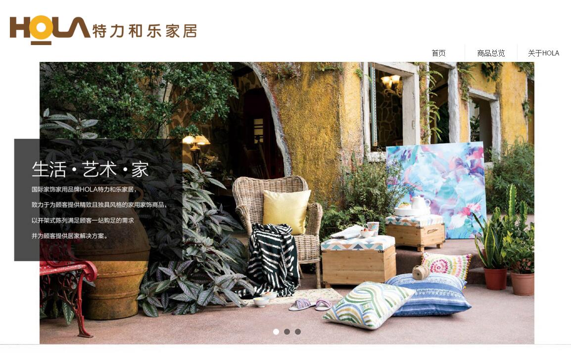 国际家饰家用品牌HOLA特力和乐家居,致力于为顾客提供精致且独具风格的家用家饰商品,拥有餐茶玻璃、床品寝具、厨房用具等超万种商品,以开架式陈列满足顾客一站购足的需求,并透过情境式摆设,提供顾客居家解决方案。HOLA 特力和乐来自台湾,隶属于国际知名贸易集团——特力集团。特力集团是一个全球性的集团,拥有三十余年的对外贸易实务经验,为全世界各地的知名零售卖场提供商品。特力集团旗下分为贸易事业群和零售事业群。贸易事业群市场覆盖美洲、欧洲、澳洲、东南亚、印度,主要经营五金工具、起居用品、卫浴收纳、季节性商品、文具用品等。零售事业群覆盖台湾和大陆,主要经营家居家饰、居家修缮、床垫寝具、全方位居家整合服务等,品牌包括:特力屋、HOLA特力和乐、CASA、特力家居、PRETTE、WEDGWOOD、HOLA PETITE、特力屋室内装修设计公司等品牌。2004年底,特力集团宣布HOLA特力和乐进入大陆市场,作为特力集团的先行部队,充当着开辟大陆软装零售市场的先锋。目前已开设了三十余家门店,品牌已覆盖北京、上海、武汉、成都等14个城市。HOLA特力和乐家居拥有优质的会员制度,大陆地区已超过200万的家庭会员 。