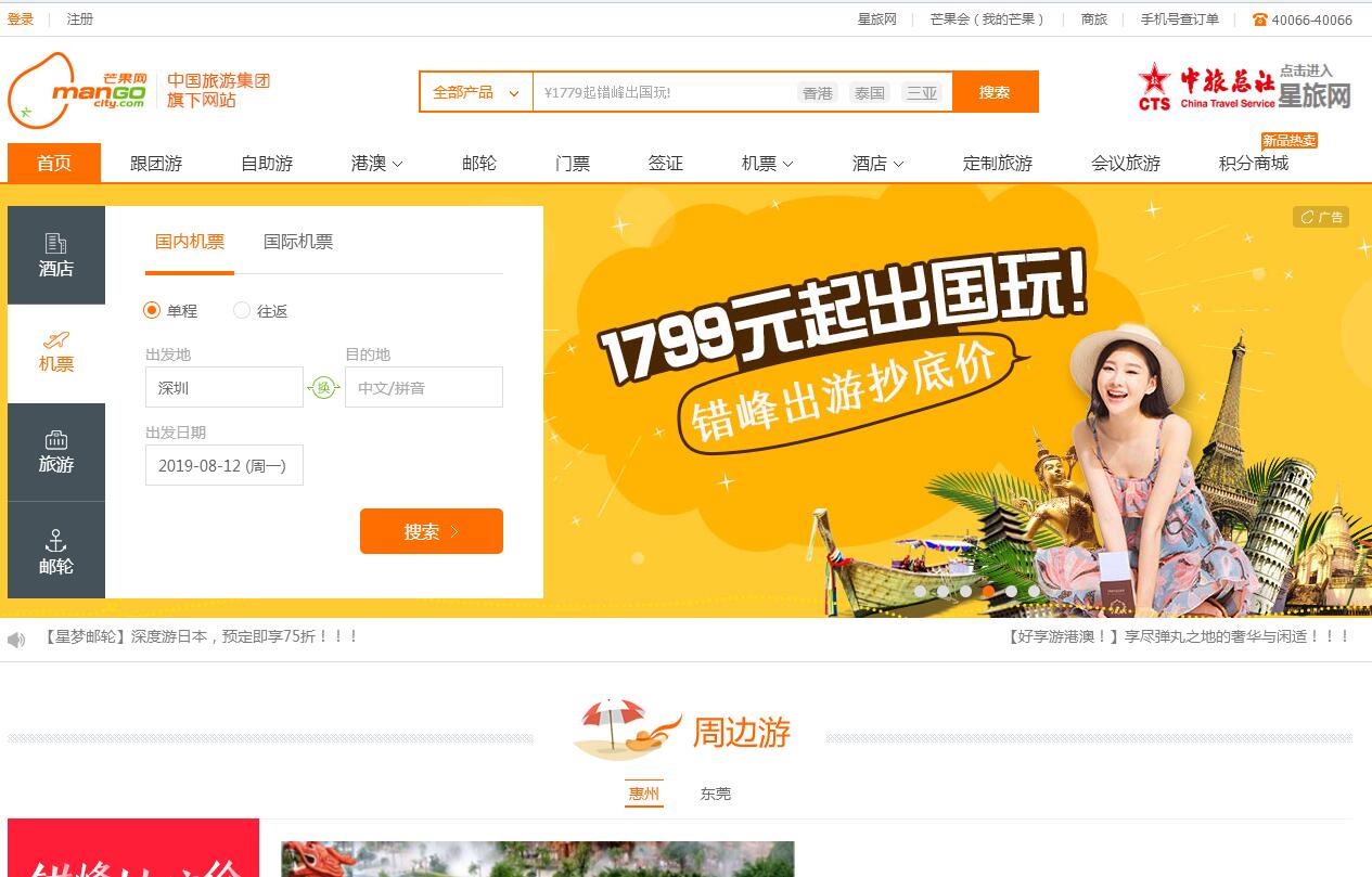 | 网站标签: | 港中旅 芒果网 旅游 | ||