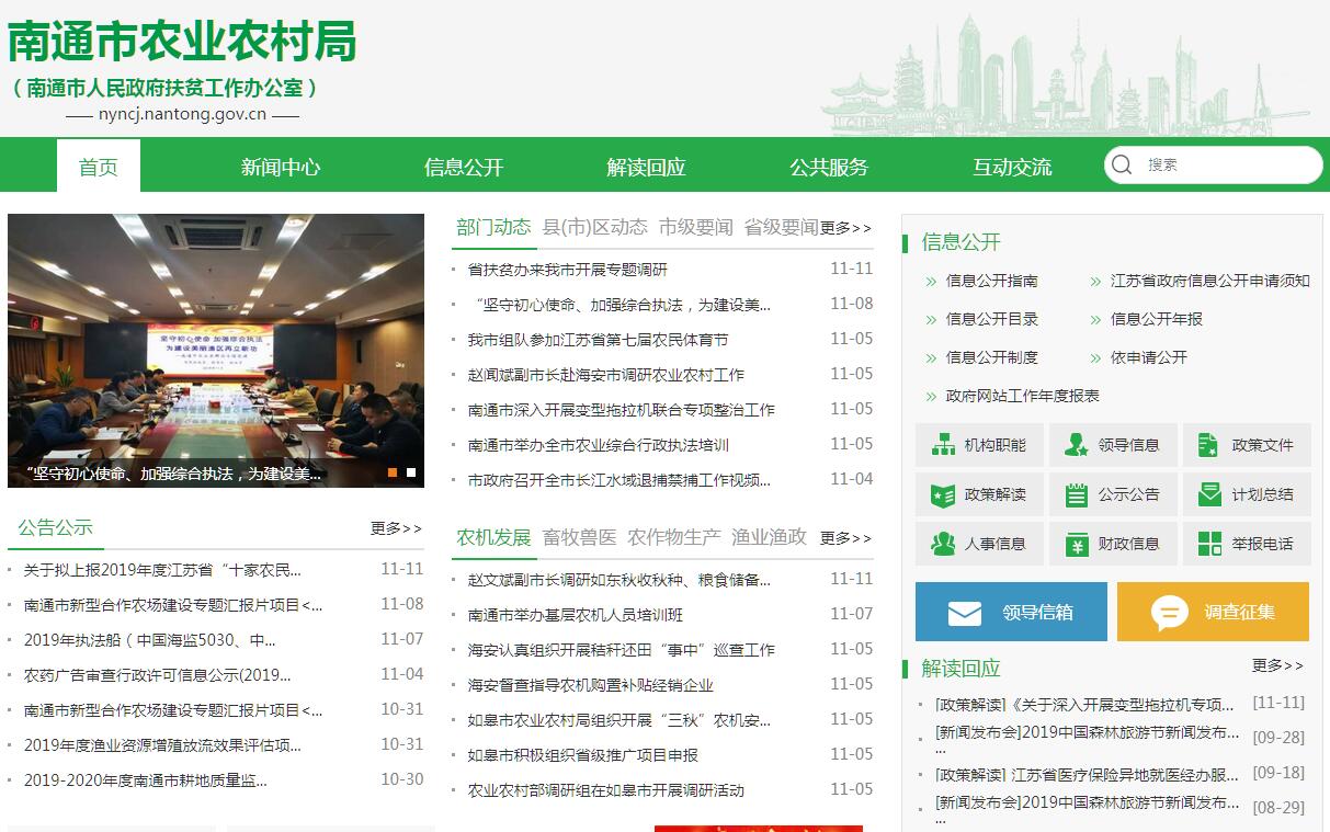 南通市农业农村局主要职责:(一)贯彻落实“三农”工作发展战略,统筹研究和组织实施“三农”工作发展战略、中长期规划、重大政策。组织起草农业农村有关地方性法规、规章草案,负责农业综合执法。参与涉农财税、价格、收储、金融保险、进出口等政策制定。(二)贯彻落实扶贫工作方针政策和法律法规,拟订全市扶贫工作规划和年度计划。协调拟订财政专项扶贫资金的分配、使用方案。建立健全扶贫开发协调机制,推进落实精准扶贫精准脱贫工作长效机制。建立健全扶贫工作责任制,制定和落实扶贫开发目标责任和考核评价办法。负责脱贫攻坚工作考核,实施绩效考核评价。负责全市扶贫开发宣传、培训和信息化建设等工作。(三)统筹推动发展农村社会事业、农村公共服务、农村文化、农村基础设施和乡村治理。牵头组织改善农村人居环境。指导农村精神文明和优秀农耕文化建设。负责农业行业安全生产监督管理工作。(四)拟订深化农村经济体制改革和巩固完善农村基本经营制度的政策。负责农民承包地、农村宅基地改革和管理有关工作。负责农村集体产权制度改革,指导农村集体经济组织发展和集体资产管理工作。指导农民合作经济组织、农业社会化服务体系、新型农业经营主体建设与发展。(五)指导乡村特色产业、农产品加工业、休闲农业发展工作。提出促进大宗农产品流通建议,培育、保护农业品牌。发布农业农村经济信息,监测分析农业农村经济运行。承担农业统计和农业农村信息化有关工作。(六)负责种植业、畜牧业、渔业、农业机械化等农业各产业工作的监督管理。指导粮食等农产品生产。组织构建现代农业产业体系、生产体系、经营体系,指导种植业、畜牧业、渔业、农机标准化生产及建设工作。负责远洋渔业管理和渔政渔港监督管理,承担渔业船舶检验和监督管理职责。(七)负责农产品质量安全监督管理。组织开展农产品质量安全监测、追溯、风险评估。参与制定农产品质量安全地方标准并会同有关部门组织实施。指导农业检验检测体系建设。依法实施符合安全标准的农产品认证和监督管理。(八)组织农业资源区划工作。指导农用地、渔业水域以及农业生物物种资源的保护与管理。负责水生野生动植物保护、耕地及永久基本农田质量保护工作。推进农业绿色发展,指导农产品产地环境管理和农业清洁生产及农产品禁止生产区划定。推广休耕轮作提高耕地地力,促进农业可持续发展。指导设施农业、生态循环农业、节水农业发展以及农村能源综合开发利用、农业生物质产业发展。牵头管理外来物种。(九)负责有关农业生产资料和农业投入品的监督管理。组织协调农业生产资料市场体系建设,拟订有关农业生产资料地方标准并监督实施。组织兽医医政、兽药药政药检工作,负责执业兽医和畜禽屠宰行业管理。依法开展农作物种子(种苗)、种畜禽、肥料、农药、兽药、饲料及饲料添加剂的相关许可与监督管理。负责重大动物疫病应急防控工作。指导和督办重大农业案件的处理。(十)负责农业防灾减灾、农作物重大病虫害防治、重大动物疫病防控和协调渔业生产安全搜救工作。组织重大动植物疫病的防控工作,发布疫情并组织扑灭。指导动植物防疫检疫体系建设。组织种子、农机等救灾物资储备和调拨,提出生产救灾资金安排建议,指导紧急救灾和灾后恢复生产。(十一)负责农业投资管理。提出农业投融资体制机制改革建议。编制市级投资安排的农业投资项目规划,提出农业投资规模和方向、扶持农业农村发展财政项目的建议,按照规定权限审批农业投资项目,负责农业投资项目资金安排和监督管理。组织实施中央、省投资安排的农业投资项目。(十二)推动农业科技体制改革和农业科技创新体系建设。指导农业产业技术体系和农技推广体系建设,组织开展农业领域的高新技术和应用技术研究、科技成果转化和技术推广。负责农业转基因生物安全监督管理和农业植物新品种保护。(十三)指导农业农村人才工作。拟订农业农村人才队伍建设规划并组织实施,指导农业教育和农业职业技能开发,指导新型职业农民培育、农业科技人才培养和农村实用人才培训工作。(十四)承办农业涉外事务工作,组织开展农业对外交流、农业利用外资、农业“走出去”、农业贸易促进和有关国际经济技术交流合作,指导开放型农业发展,协助实施农业援外项目。(十五)完成市委、市政府交办的其他任务。