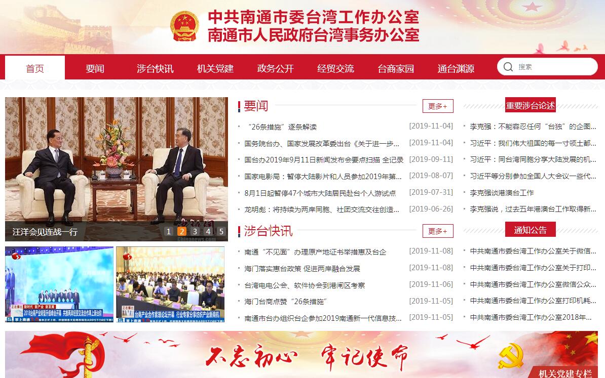 中共南通市委台湾工作办公室,主要职责:1、贯彻执行党中央、国务院确定的对台方针、政策和省台办、市委、市政府的对台工作部署,制定并组织实施全市对台工作计划、规划。2、负责组织、指导、管理、协调全市对台工作。检查了解各县(市)区、各部门贯彻执行党中央、国务院对台方针、政策和省、市对台工作部署的落实情况。协调处理我市涉台重大事件。3、负责统筹协调和指导全市对台经济工作,组织或参与重要的对台招商活动,受理台商和台资企业的投诉,协调处理台资企业的矛盾和纠纷。4、负责统筹协调和指导全市与台湾的金融、文化、教育、科技、卫生、体育等各个领域的交流与合作以及两岸人员往来、考察、研讨等工作。5、负责研究两岸关系发展和台湾岛内关系的变化,以及对我市经济和社会发展的影响,并适时提出工作意见和建议。6、负责协调有关部门研究、草拟我市有关涉台的政策、法规,统筹协调我市涉台法律事务。7、负责管理协调我市与台湾的通邮、通航、通商事务。8、负责对台宣传、涉台教育、重大涉台事务的新闻发布,涉台工作干部的培训教育等工作;9、负责指导、协调在我市定居台胞的管理工作,以及我市与台湾人员交往中的有关民事工作。10、负责联络台湾上层人士,指导、管理并协调各县(市)区、市各有关部门的对台上层联络工作。11、指导市各民主党派、工商联和群众团体有关重点人士、重大活动等方面的涉台工作,管理、指导市台资企业协会和市台属联谊会等有关涉台团体、社会团体工作。12、完成市委、市政府交办的其他工作。