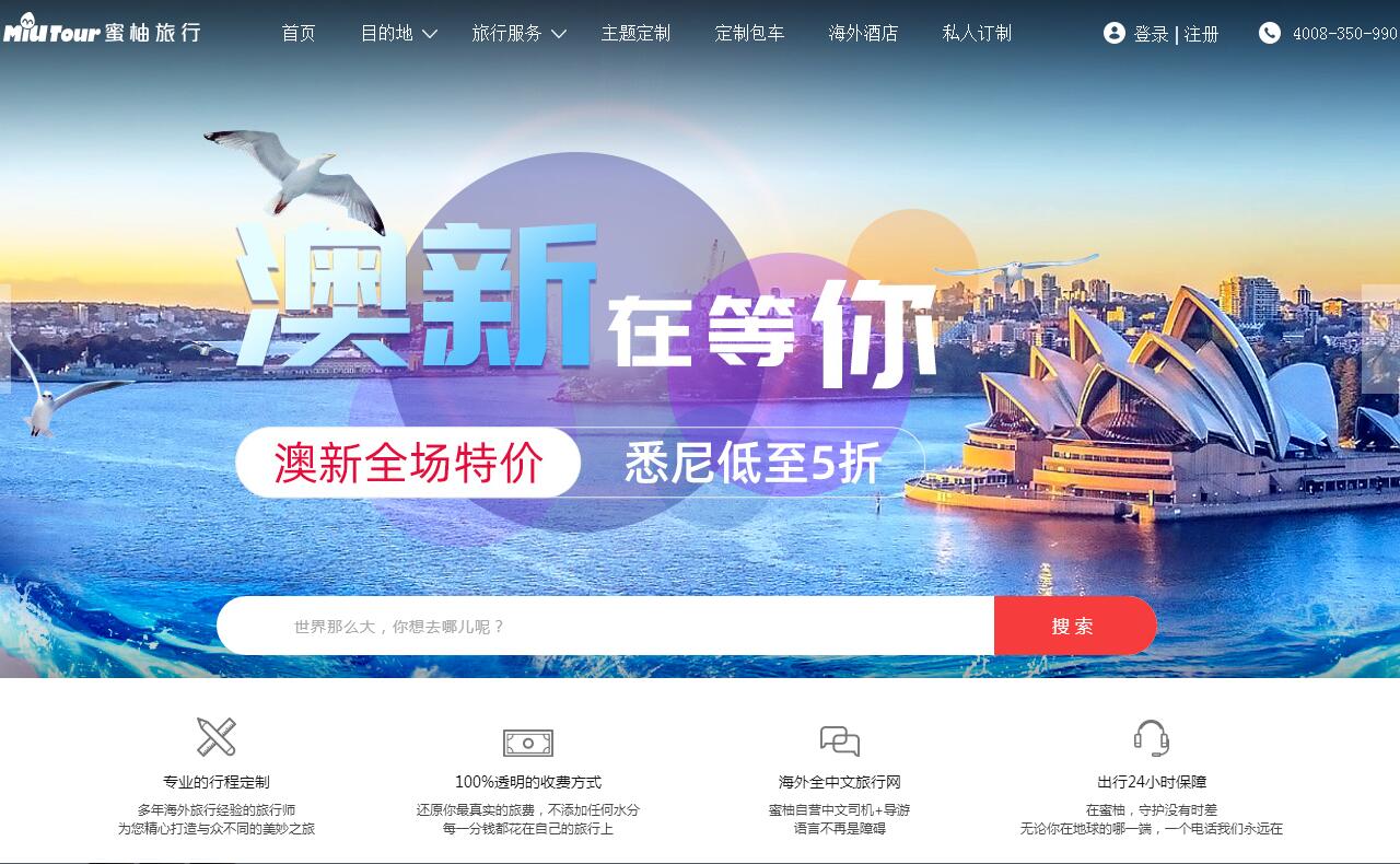 | 网站简介: 蜜柚旅行隶属于上海觅程网络科技有限公司,创立于2014年,旨在让用户真正享受轻松自在、趣味非凡的海外私人旅行!蜜柚旅行致力于在游客与境外终端导游之间建立直接对接的平台,让用户享受到定制化深度旅游的同时,节省大量的时间、精力和成本;也为有能力的终端导游创造了可以实现差异化服务的空间,从而提供更具当地特色的景点线路和旅游项目提供给用户。蜜柚旅行,寻觅最诱人的海外本地旅行! |