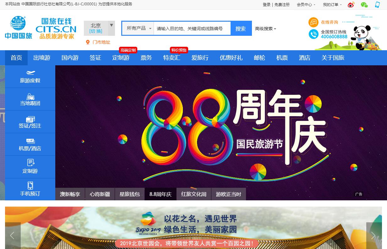 中国国际旅行社总社有限公司(China International Travel Service Limited, Head Office,简称国旅总社),前身是中国国际旅行社总社,经政务院批准,于1954年在北京成立的新中国第一家接待海外游客的旅行社,是第一批获得国家特许经营出境旅游的旅行社、世界旅游组织在中国的第一家企业会员、北京市5A级旅行社之首。国旅总社先后加入了PATA(太平洋亚洲旅行协会)、IATA(国际航空运输协会)、ASTA(美国旅行代理商协会)、WTTC(世界旅游业理事会)、WTCF(世界旅游城市联合会)等国际组织,是中国旅行社协会副会长单位。国旅总社的成立,标志着新中国旅游业的开始,国旅总社的发展,是中国旅游业改革发展的缩影。成立60年来,国旅总社一直致力于推动中国与世界在各个领域的交往,促进中国与世界各国人民友好往来,充分发挥了“民间大使”的作用,累计招揽、接待海外来华旅游者达数千万人次,伴随着改革开放和中国经济的腾飞,经过几代国旅人的艰苦创业和不懈努力,国旅总社已经发展成为集入境游、出境游、国内游、会奖旅游、签证服务、商旅服务、航空服务、电子商务等综合服务于一体的大型旅游企业,是国内知名旅行社企业集团。国旅总社多次荣获国家和北京市政府“最佳旅游企业奖”、“旅行社最高创汇奖”、“旅行社最高外联人数奖”、“首都旅游紫禁杯最佳集体”等奖项,曾多次获得中国旅行社百强第一名。2008年,作为北京奥运会火炬接力境内外传递的独家后勤保障服务单位和唯一参与奥运官方接待服务的旅游企业,国旅总社为奥运会的成功举办做出了积极贡献,并为上海世博会、广州亚运会、西安世园会和北京园博会等国家盛会提供了一流的旅游服务,赢得了广泛赞誉。“国旅•CITS”品牌已成为国内领先、亚洲一流、世界知名的中国驰名商标,在世界品牌实验室发布的2017年中国500最具价值品牌中,“国旅”及“CITS”品牌以605.89亿元的品牌价值,荣登中国500最具价值品牌排行榜第48名,连续多年在旅游服务类品牌中位居第一,持续领跑中国旅游服务行业。2004年,国旅总社和中免公司合并重组成为中国国旅集团有限公司,2009年,又作为中国国旅股份有限公司的重要子公司在上海证券交易所挂牌上市。2016年,经国务院批准,中国国旅集团有限公司与中国港中旅集团公司重组成立中国旅游集团公司,国旅总社成为中国旅游集团旗下企业。在集团及股份公司的正确领导和大力支持下,近年来,按照“三游并重、两网并举”的发展战略,国旅总社不断巩固入境游,大力发展出境游,积极拓展国内游,重点推进商务会奖旅游,加速布局海外签证中心,倾力打造以“国旅•CITS”入境游品牌、“环球行(Total Travel)”出境游品牌、“国旅假期”国内游品牌、“自游天下”自由行品牌、“国旅会奖”会奖旅游品牌及“国旅在线”电商品牌为核心的产品系列和品牌体系,以旅行社实体网络拓展和在线旅游电子商务为主要发展路径,不断扩大经营规模和市场份额。目前,国旅总社在全国范围内拥有全资、控股企业38家,参股企业5家,旅游门市数量1800余家,国旅理事会成员社上百家;在全球12个国家和地区设有6家全资、控股的海外旅行社公司和19家海外签证中心,并与100多个国家的1400多家旅行商建立了长期稳定的合作关系,形成了立足国内、放眼全球的现代化经营网络。未来,国旅总社将继续秉承“不怕困难、专业高效、团队合作、勇于创新”的国旅精神,以科学发展为主题,深化企业改革、优化资源配置、转变发展方式、加快转型升级,按照专业化分工、协同化发展、集约化经营的思路,进一步做强做优做大主营业务,成为中国领先、世界一流、掌控核心资源的开放式旅游平台运营商,为中国从旅游大国迈向旅游强国做出新的更大的贡献!
