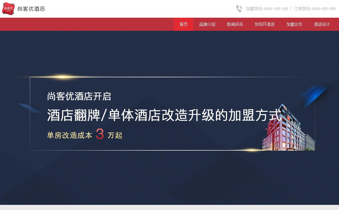 | 网站简介: 尚客优酒店是青岛尚美生活集团有限公司旗下主打酒店品牌。尚客优酒店致力于通过一站式连锁酒店管理服务,为酒店加盟商提供具有投资价值的酒店产品;通过打造高颜值、标准化、人性化的酒店氛围,为商旅客人提供“轻松住、美美睡”的住宿体验。青岛尚美生活集团有限公司,是位列中国酒店集团第五,全球酒店集团第19位的大型住宿集团,于2010年正式创立。尚美生活现已覆盖全国31个省300余座城市,旗下酒店4000多家(含在营店和筹建店),会员数量7000多万。未来,集团将不断探索住宿业与互联网的结合、与新生活方式的结合,致力于成为生活服务连锁平台,打造新尚美好生活。 |