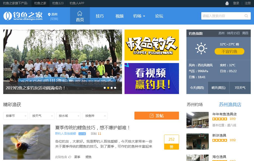 | 网站简介: 钓鱼之家是钓鱼人的社区,为钓友提供钓鱼技巧、饵料配方等钓鱼知识,和钓友分享晒渔获、切磋钓技、相互交流、共同提升;并汇集了快乐垂钓频道和四海钓鱼频道等钓鱼视频,是钓鱼爱好者网上学钓鱼的理想家园。 |