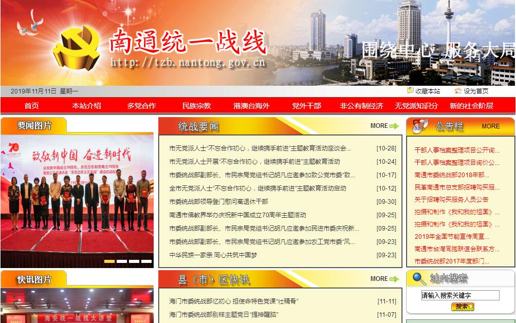 中共南通市委统战部工作职责:1、在市委领导下,组织贯彻执行中央和省委有关统一战线的方针、政策;调查研究,向市委和上级统战部门反映我市统一战线的全面情况,提出开展统战工作的意见和建议;检查党的统战方针政策在我市的执行情况;协调我市统一战线各方面的关系。2、负责联系市各民主党派和无党派代表人士,及时通报情况,反映他们的意见和建议;贯彻落实党领导的多党合作和政治协商制度以及党对民主党派的方针、政策;发挥民主党派和无党派代表人士参政议政、民主监督的作用,为市委同民主党派和无党派代表人士进行政治协商做好组织联系工作;受市委委托,向民主党派和无党派人士通报中央和省、市委的精神;支持、帮助市各民主党派加强自身建设,选拔、培养新一代代表人物。3、负责调查研究、协调检查党的民族和宗教政策在我市的贯彻执行情况;协调处理我市民族宗教工作方面的重大事宜;联系少数民族和宗教界的代表人物;协助市有关部门做好少数民族干部的培养和举荐工作;会同市有关部门做好少数民族地区来通挂职干部的联系、协调工作;联系指导南通西藏民族中学的有关工作;负责市委民族宗教工作领导小组的日常工作。4、负责开展以祖国统一为重点的海外统战工作;联系香港澳门和海外有关社团及代表人士;归口管理台湾在野党派、政治团体来我市访问的工作;负责联系南通海外联谊会工作;负责做好台胞、台属和侨胞、侨属以及出国和归国留学人员的统战工作。5、负责党外人士的政治安排(市及市以上人大、政协、省文史馆)及市、县(市)区统战性群众团体的人事安排;会同有关部门做好培养、考察、选拔、推荐、安排党外人士担任市政府部门及司法机关和县(市)区(人大、政府、政协)领导职务的工作;做好县处级党外后备干部和新的代表人物队伍的建设工作;负责市统战系统各部门机关干部的管理;协助市各民主党派、工商联及有关团体做好干部管理工作;规划并组织全市统战干部队伍和党外干部队伍培训工作;协助有关部门管理县级党委统战部长。6、调查、研究并反映我市非公有制经济代表人士的情况,协调关系,提出政策建议;团结、帮助、引导、教育非公有制经济代表人士,积极开展思想政治工作;联系、指导市光彩事业促进会工作;负责联系海外工商界社团和代表人士。7、调查研究我市无党派代表人士和党外知识分子的情况,反映意见,协调关系,参与有关政策措施的研究制定工作;配合有关部门检查党的知识分子政策在我市贯彻落实情况;联系并培养无党派人士和党外知识分子代表人物;做好自由择业的党外知识分子统战工作,物色联系一批代表人士,并建立相应的工作机制。8、负责开展统一战线的宣传工作。9、负责指导县级党委的统战工作和统战部门负责人的培训工作,协调政府各有关部门和各高校以及市属企事业单位的统战工作;受市委委托,领导市工商联党组,联系、指导市工商联开展工作;代管市侨联、市台联;归口指导民族宗教局和市社会主义学院的业务工作。10、协助有关部门帮助市各民主党派、工商联和有关统战团体改善工作条件。11、完成市委和省委统战部交办的其他任务。