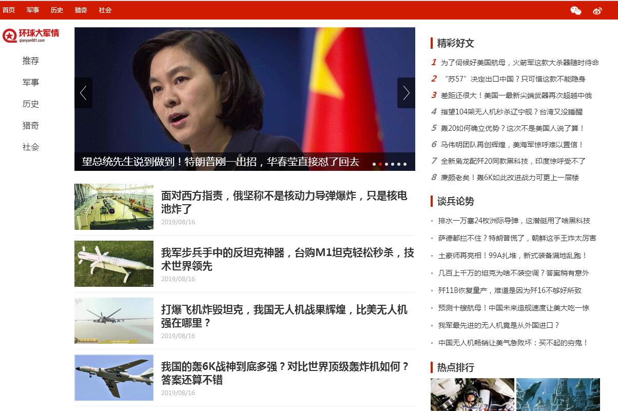 | 网站简介: 环球大军情是中国最权威的军事门户网站之一,提供最新中国军事新闻,世界军事新闻还有网友对中国军事的最新爆料。 |