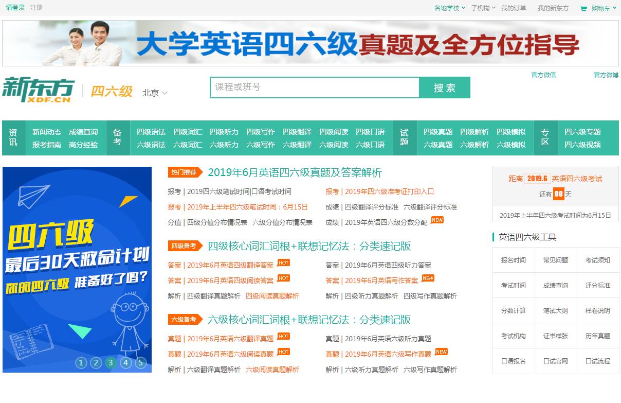 | 网站简介: [新东方]英语四六级频道提供最新大学英语四六级考试真题及答案、英语四六级报名、成绩查询、考试时间、历年真题、历年分数线、四六级考试辅导、听力、阅读、写作等信息。免费大学英语四六级考试学习资料下载、四六级考试英语范文、考试动态信息查询等各项服务。 |