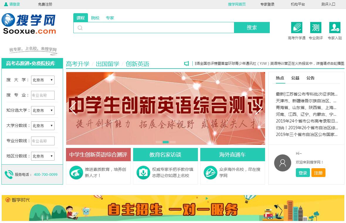 | 网站简介: 搜学网、高考升学通-高考志愿通、高考志愿测评、高考分数线查询、高考专业选择测评、高考志愿填报专家1对1辅导。 |