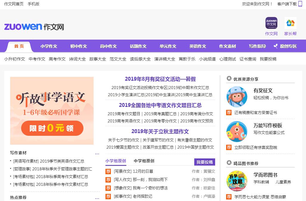 作文网是全国权威、有趣的作文学习交流门户网站,自2005年上线以来,致力于为广大学生、家长、教师及写作爱好者提供专业、全面的一站式作文投稿、写作指导、原创点评、范文欣赏等服务,并提供涵盖全国各省市最广泛的中高考作文试题、中高考满分作文、写作素材等资源。作文网现总注册用户数已超过百万人,日均浏览量上百万。除本站编辑外,很多一线的骨干教师作为网站特约点评老师。如今,作文网已成为中小学作文学习交流的首选,也将为更多的用户提供更好的服务。作文网包括中小学各年级各种题材的作文,及时最新热点文章,能够满足所有学生对不同热点作文的需求,为大家提供作文范文学习欣赏。同时网站包括名言警句、好词好句、优美段落、成语大全、考场素材等丰富的写作素材,为学生作文提供基础的写作资源。我们会在第一时间发布全国各省市中高考作文试题、题目预测和满分作文,给予学生和家长及时参考和赏析。作文网提供学生发表原创文章的平台,便捷快捷的投稿系统,使学生能够及时分享自己的原创作品,在投稿的过程中培养写作的兴趣,积累作文的经验,提高写作的水平。我们还为发表50篇以上的学生免费制作个人文集,使得每个小作者都能体验到拥有文集的快乐,现已有30多个学生拥有了自己的作文集,我们还将为更多的学生制作属于自己的文集。作文网除了本站编辑发布更新写作基础、写作指导文章外,一线的骨干教师作为网站特约点评老师,凡是进行原创投稿的学生,均有机会得到语文骨干教师的专业点评指导,使得学生的原创投稿得到及时的审核和专业的点评,指明不足之处、理清写作思路和方向,不断提高写作水平和作文成绩。作文网每月都会举行丰富的征文活动,比如每月征文和热点话题pk赛,还有暑假、寒假等大型的作文比赛。每月征文将由专业教师评选,获奖作品将有老师进行专业点评。pk赛由学生互相评分评出,增加了学生阅读、学习他人文章的热情,同时也增强了学生间的互动,获奖作者也将获得精美礼品。我们的活动得到了学生的积极参与,也得到了学生家长以及老师的认可。作文网建站至今,一直以用户需求为核心,提供全国权威、全面的作文学习信息。我们也将一如既往的为用户提供更好的服务,期望得到更多用户的支持和认可,成为学生们学习提高写作的良师益友,成为所有用户信任和认可的作文学习交流门户网站。