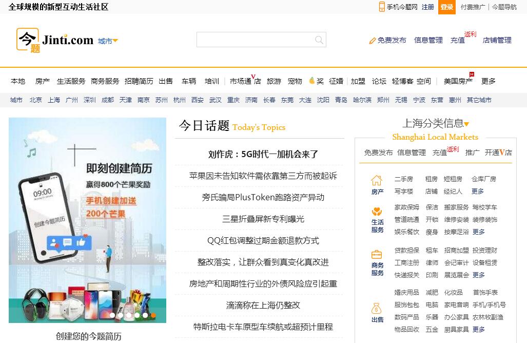 今题网( www.Jinti.com)是一家著名的跨国互联网技术企业,研发中心位于美国纽约,运营团队位于中国上海。今题网是全球规模的先进智能化数码平台,为用户提供精准本地信息发布、社交应用、为中小本地商家和大型品牌企业提供数码营销等业务。今题网的在线服务涵盖:房产、本地服务、物品出售、教育培训、人才招聘、旅游,博客、图集等多个特色频道。自从成立以来,公司凭借独特的定位和团队超强的人工智能技术应用吸引了超过千万的用户成为今题网的注册会员。据艾瑞市场咨询(iResearch)的独立统计数据,今题网已成为全国五大社区网站之一。根据第三方网络统计公司Alexa的数字,今题网在上海地区商务类网站排名率先,,月访问量峰值更是突破11,200万。其70%以上的用户具备一流的购买力,是年收入超过20万元的白领和商业人士。同时今题网通过其强大的网络平台,使用AI智能技术,在国内的435个城市和北美的200个城市为数万家中小企业提供优质技术和营销推广服务。今题网的数码产品易懂好用,操作简单,价格非常友好,吸引了一批商家连续使用今题网营销推广服务超过10年之久。今题网赢得了越来越多中小企业认可和喜爱,其在线订单量连续多年不断大幅度增长。今题网并利用先进的AI技术为国际知名品牌客户做有效的推广服务,得到业内外广泛认可。今题网不仅是千万网友的线上家园,也是中小型企业和国际品牌进行在线宣传和品牌推广的领先营销平台。今题网在为本地商家提供精准的本地推广服务的同时,推出了最新的尖端AI技术解决方案,让品牌企业成为业内领先旗帜。其独特领先架构和具有AI算法的聪慧产品使得今题网走在竞争对手前面。从中小微企业,到大型国际知名品牌,都使用今题网平台和智能营销产品推广他们的品牌,提升自己的业务。今题团队以诚信、实力、优质服务、和超强的技术水平获得业界的高度认可。我们坚持以客户为核心、服务一流、技术超前的经营理念为广大中小型商家和品牌客户提供优质服务。今题的领先数码解决方案被全球知名的国际品牌企业所认可,许多国际企业成为了今题网长年稳定的客户。今题网是谷歌DoubleClick Ad Exchange广告交易平台在中国的的大型互联网合作媒体之一。今题网秉承运用社区的力量帮助企业发展的理念,研发出一系列易懂、好用、性价比高的自销型领先数码产品。同时今题网也为国际著名品牌客户提供周到的高端技术服务。