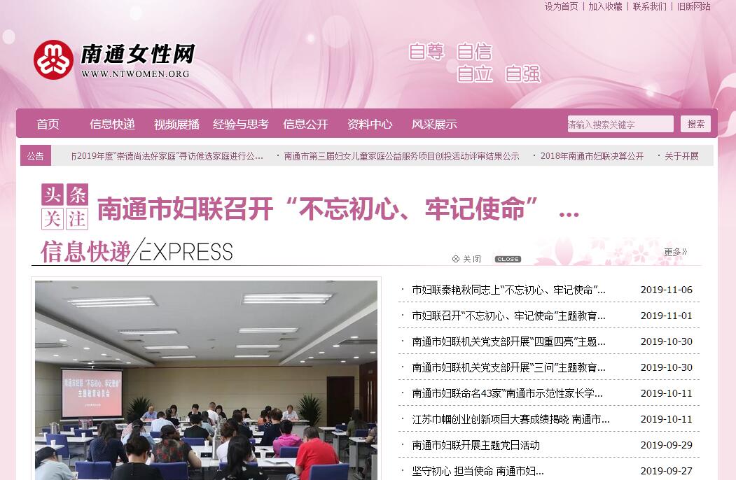 | 网站简介: 南通市妇女联合会是中共南通市委和江苏省妇联领导的全市各族各界妇女联合起来的社会群众团体,是党和政府联系妇女群众的桥梁和纽带,是国家政权的重要支柱之一。其基本职能:代表和维护妇女权益,促进男女平等。 |