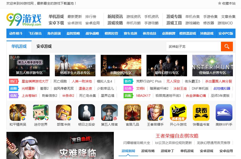 | 网站简介: 99单机是国内以单机游戏、网络游戏、手机游戏、小游戏下载,游戏资讯、评测、攻略等综合信息服务为主的单机游戏综合性门户网站,99单机网致力于向玩家提供有价值的原创单机资讯和及时的攻略信息,并以免费绿色的高速资源下载以及便捷的一键式安装而广受玩家欢迎。我们提供的主要服务内容包括:单机游戏下载,手机游戏下载,工具软件下载,原创游戏资讯,攻略评测。力求为玩家传递游戏业界最快最新的新闻信息,并向玩家提供免费的整合资源下载。为游戏玩家提供更专业,更优质的服务是我们的唯一追求。 |