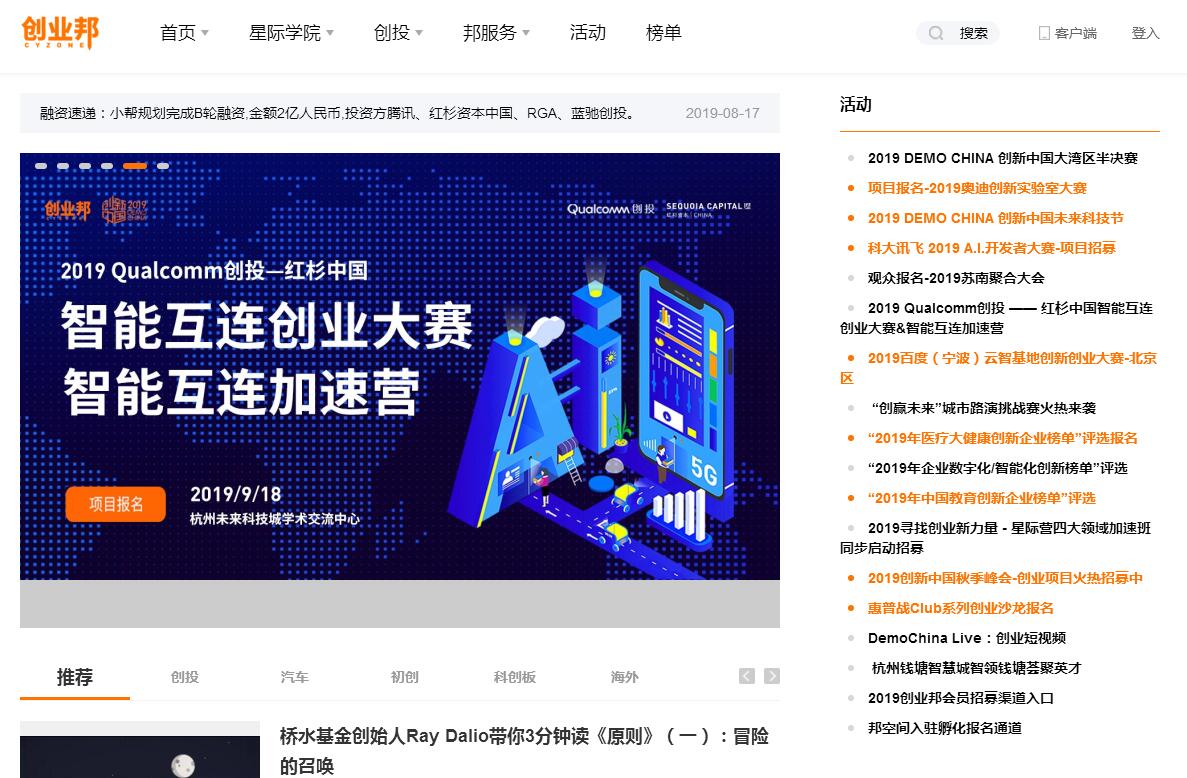 创业邦成立于2007年,致力于打造国际化创业创新创投生态服务平台。成立以来,创业邦以帮助创业者成功为使命,业务涵盖媒体内容与创新生态服务两大版块。公司及相关基金先后获得IDG、红杉、北极光、赛富、启赋等国内外机构投资。其主要产品与服务。创业邦媒体:包括创业邦杂志、网站、App、微信、微博、头条号、企鹅号、榜单、研究报告、项目库等在内的创业信息服务矩阵,以专业的科技创投视角关注创业相关的资讯与经验、资本与人才、模式与产品,发掘新一代优秀商业代表并向他们提供创新创业服务。创新中国Demo China:2006年在北京首秀的创业邦自有品牌活动,创新产品服务和商业模式的展示平台,面向全国创业群体。每年筛选各领域优质初创企业上台路演展示项目,历年来吸引熊晓鸽、徐小平、沈南鹏、阎焱、邓锋等诸多国内外优秀投资人列席,致力于连接优质的资本与优秀的创业者。创业邦100未来领袖峰会:中国创业领域大型交流活动,是中国新锐商业领袖、高成长企业CEO和优秀投资人共同切磋成长经验、探寻商业机会、展望商业趋势的年度盛会。峰会期间发布的“中国创新企业100强(创业邦100)”榜单,关注年度富有潜力的创业公司,致力于挖掘具备独角兽潜质的创新公司。此外,还会颁布“年度天使投资人”、“年度创业人物”、“30岁以下创业新贵”等创投领域奖项。创业邦星际学院:创业技能和信息补给的在线平台。以高效快捷的移动互联网方式,每年推出上百款付费产品。产品包含音频节目、直播、微课、报告、文档等产品形态,致力于帮助初阶创业者更快更好地掌握创业实践中团队组织、资金募集、产品研发及市场推广等方面所需要的实战技能。创业邦星际营Bang Camp:创业邦旗下加速计划。通过与优秀资本和产业公司深度合作,为学员提供“资本+产业精准对接、商业实战训练、1V1导师辅导、媒体曝光”等各方面服务,助力帮助创业者思维通道和能力结构搭建。截至2017年8月,已加速7期。创业邦邦空间Demo Space:提供优质协同办公空间和孵化服务,以专业化的创业及产业服务,集合投资机构、产业资源、地方政府等创业要素,助推优秀企业走向卓越。目前已在北京、上海、深圳、杭州、广州、苏州、南京、无锡、常州、成都、重庆11个城市开放,空间面积共计4万平方。创业邦天使基金:专注于投资具有独角兽潜质的早期创业公司,重点关注前沿科技、文体娱乐、企业服务与消费升级等方向,并为已投企业提供媒体、孵化、投融资及产业资源对接等多维度的投后服务。创业邦天使基金同时拥有美元及人民币基金,现已投资Insta360、礼物说、易思汇、诸葛IO、宜花、冻品在线、水滴互助等40余个项目。