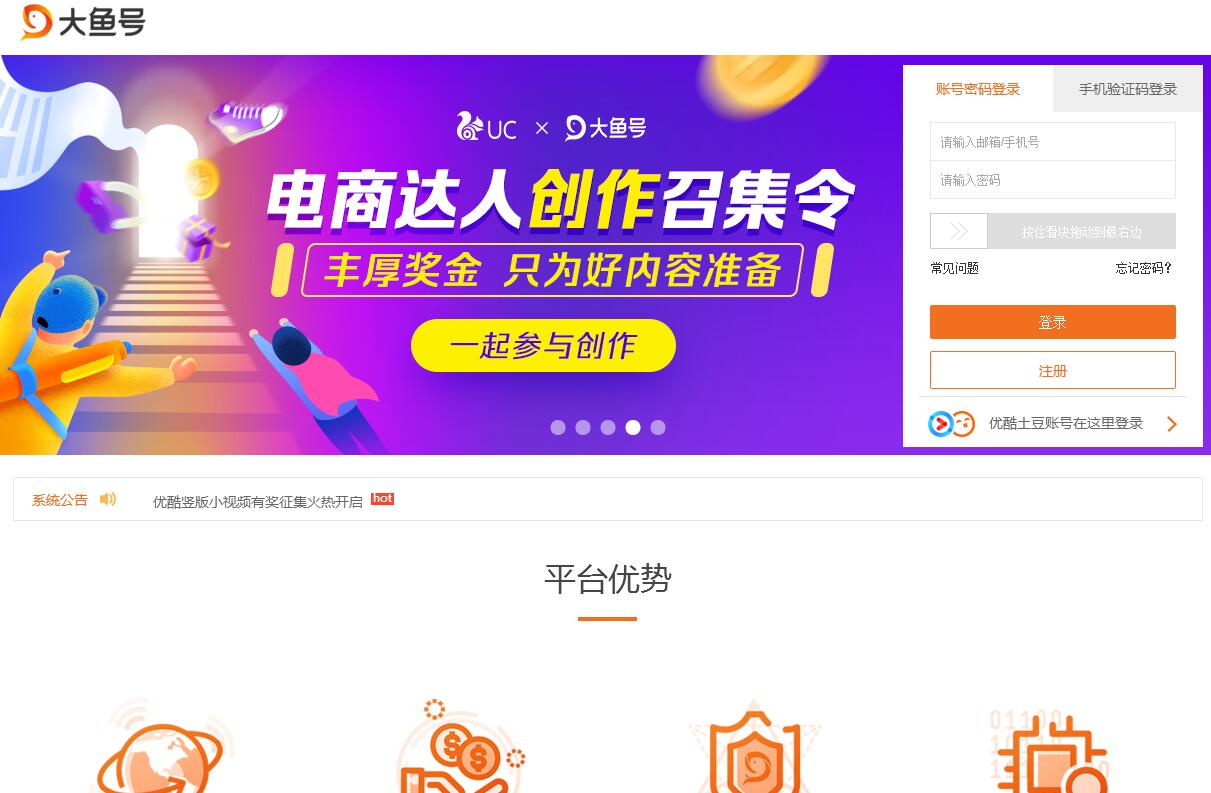 | 网站简介: 大鱼号是阿里文娱体系为内容创作者提供的统一账号。大鱼号实现了阿里文娱体系一点接入,多点分发。内容创作者一点接入大鱼号,上传图文/视频可被分发到UC、优酷、土豆、淘系客户端,未来还会扩展到豌豆荚、神马搜索、PP助手等。 |