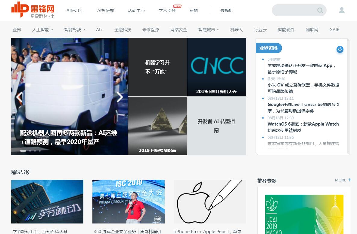 | 网站简介: 雷锋网成立于2011年,秉承“关注智能与未来”的宗旨,持续对全球前沿技术趋势与产品动态进行深入调研与解读,是国内具有代表性的实力型科技新媒体与信息服务平台。 |