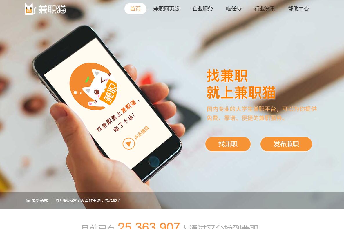 | 网站简介: 兼职猫是由广州九尾信息科技有限公司推出的互联网一站式兼职服务平台,围绕企业与个人需求,提供精准匹配的灵活用工服务,为求职者提供安全可靠的零工兼职岗位,有效为企业节省用人成本。兼职猫面世于2013年10月,是一个围绕企业与个人需求,提供匹配岗位的一站式兼职服务平台。平台亦提供企业代招服务,运营范围覆盖零售、餐饮、房产、教育、金融、旅游等数十个行业,为企业提供移动互联网定制化岗位匹配与快速培训到岗服务。兼职猫已建成兼职招聘全流程管理系统、兼职管理和即时通信系统、企业动态用工需求库、兼职分级人才库、黑中介智能筛选系统等多个服务系统,是一站式的企业兼职用工解决方案提供商。平台汇集海量灵活用工岗位服务信息,依托智能分析与大数据,筛选出诚信安全的兼职信息,保障个人用户的兼职人身安全。 |