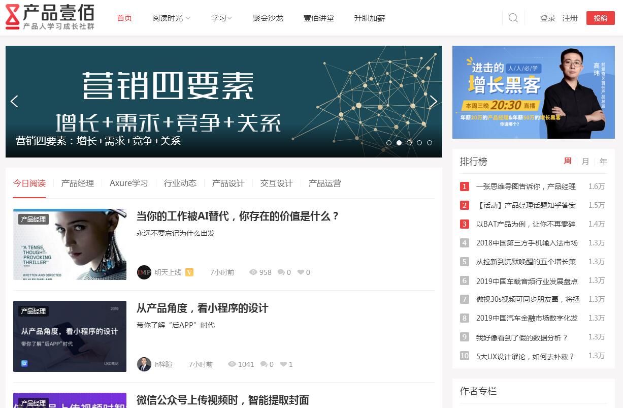 | 网站简介: 产品壹佰(www.chanpin100.com),是慧科集团旗下企业开课吧倾力打造的,互联网产品人学习成长社群;致力于为互联网产品爱好者,提供优质学习资讯、线上公开课、线下沙龙、学习社群与教学服务。 |