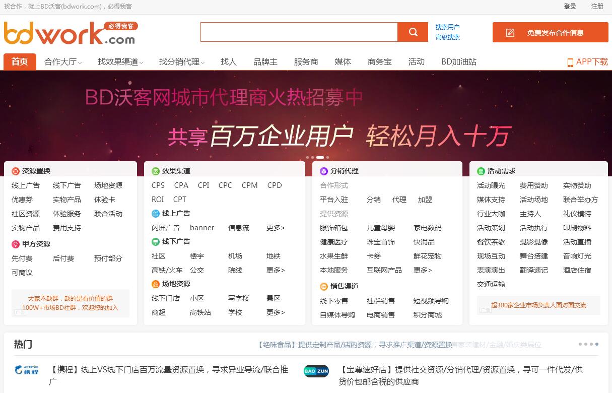 | 网站简介: BDWORK.COM(必得我客)作为国内领头的异业合作平台,将海量、分散、闲置的媒体资源、商务拓展资源、用户资源 以及客户资源,平台化、协同化地集聚、复用与供需匹配。平台从异业合作信息为切入点,通过汇集的海量合作需求,聚合各企业人脉和资源力量,对信息进行智能分析、自动匹配、商机挖掘,从而促进同行上下产业链对接、跨界合作、异业 合作、跨境合作等各类合作的精准、极速的达成,帮助企业完成合作的最后一公里“合作+”生态圈,有效的帮企业提高 市场拓展工作效率并降低成本。找合作,就上BDWORK.COM(必得我客)。 |